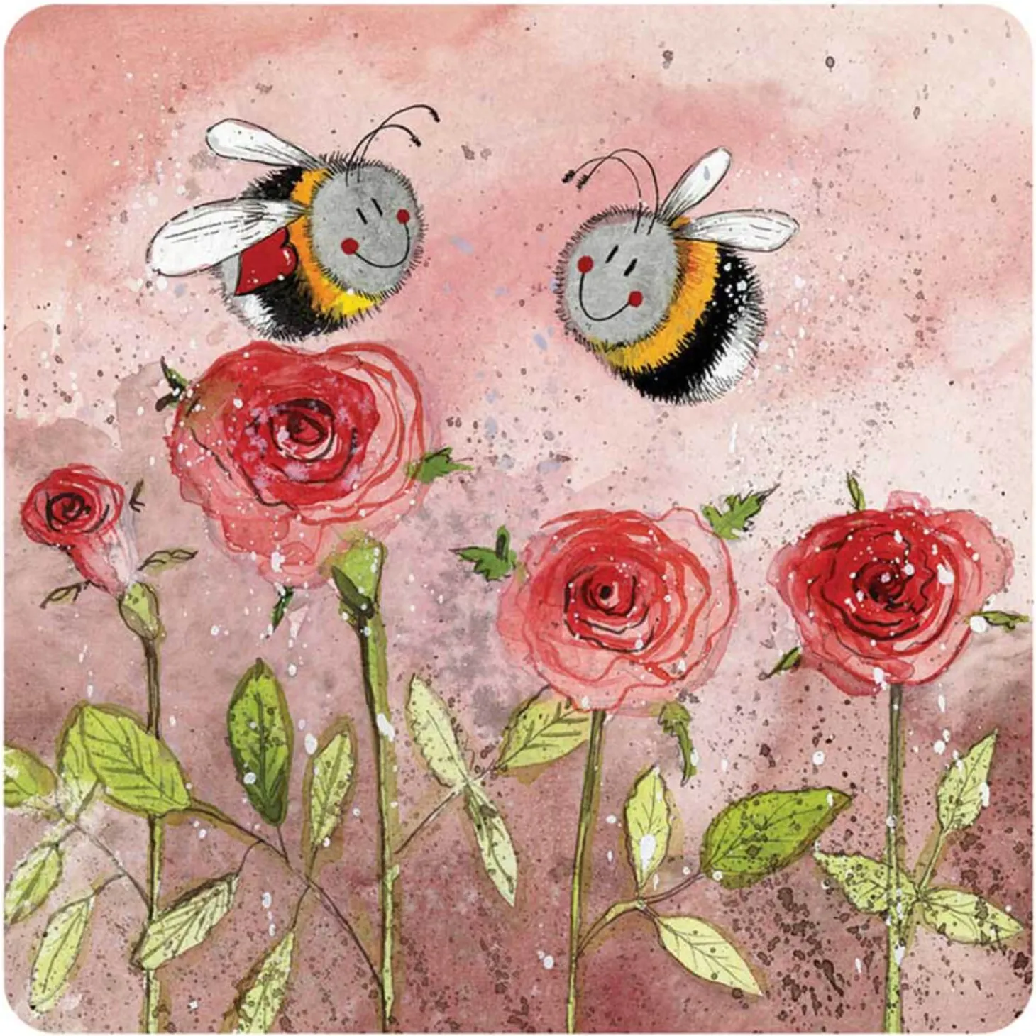 Alex Clark presents the ‘Bee & Roses’ Coaster, this lovely coaster features an illustration of delightful bees hovering over some red roses. The perfect coaster to go with your morning mug of coffee or tea.