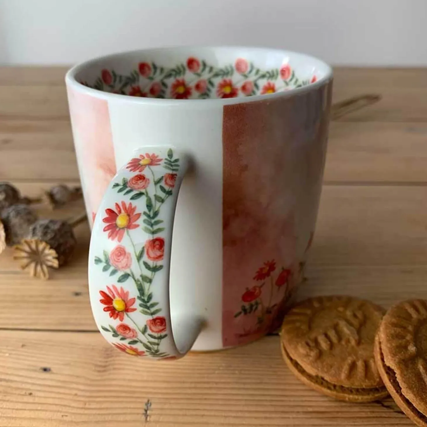 A lovely way to start your day with a tea or coffee in this lovely ‘Goldie & Flowers’ Alex Clark mug. This mug features a delightful illustration by Alex Clark of a gorgeous golden retriever holding flowers, with more flowers around the inner rim and down the handle. Perfect for your favourite hot drink.