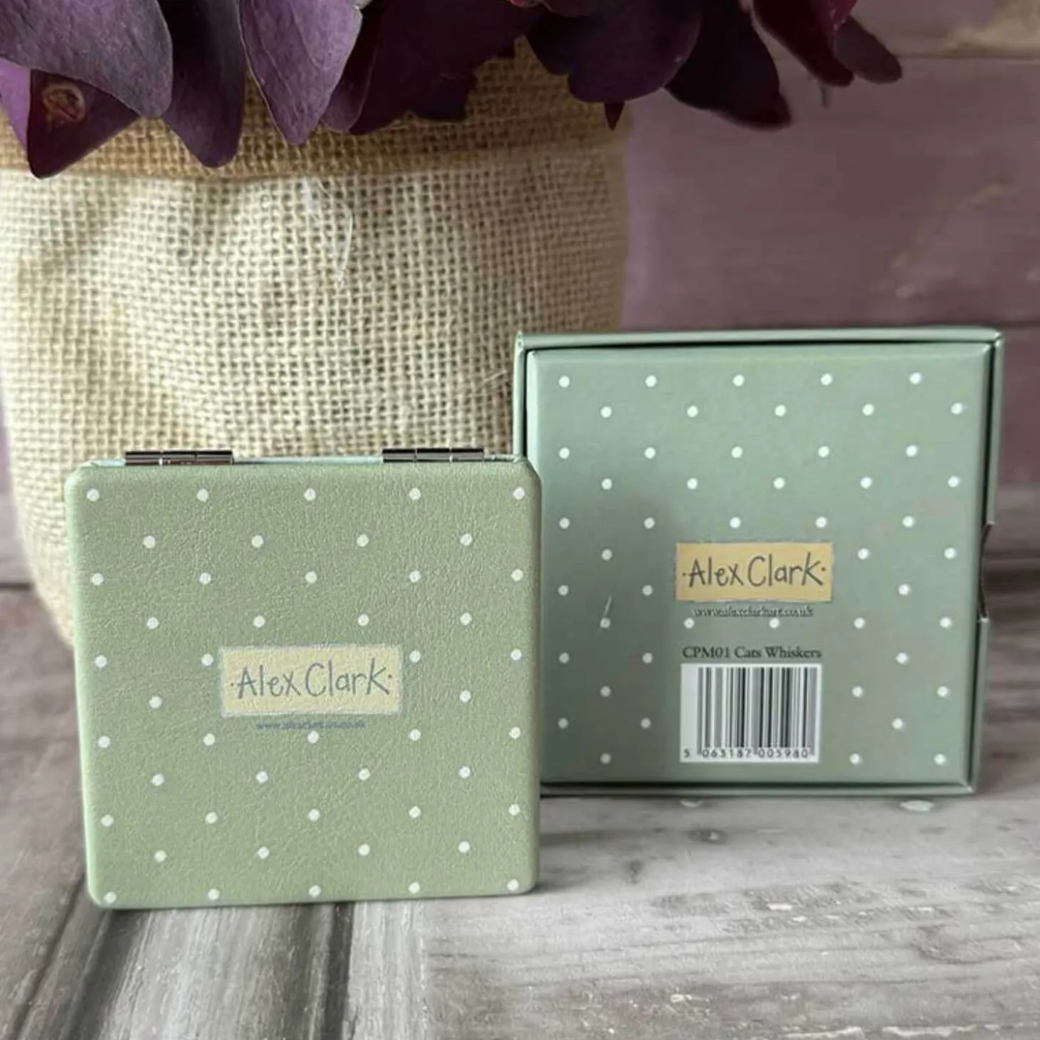 Alex Clark presents the ‘Cat Whiskers’ Vegan Leather Compact Mirror, a perfect blend of fun and practicality for your everyday needs. Featuring a double mirror, this compact is illustrated with two sleepy pussycats resting under a blanket, inspired by Alex’s love for animals. The soft vegan leather not only adds a touch of luxury but is also a cruelty-free and eco-conscious alternative to traditional leather. Presented in a matching gift box, this charming compact would make a lovely gift or special treat for yourself!