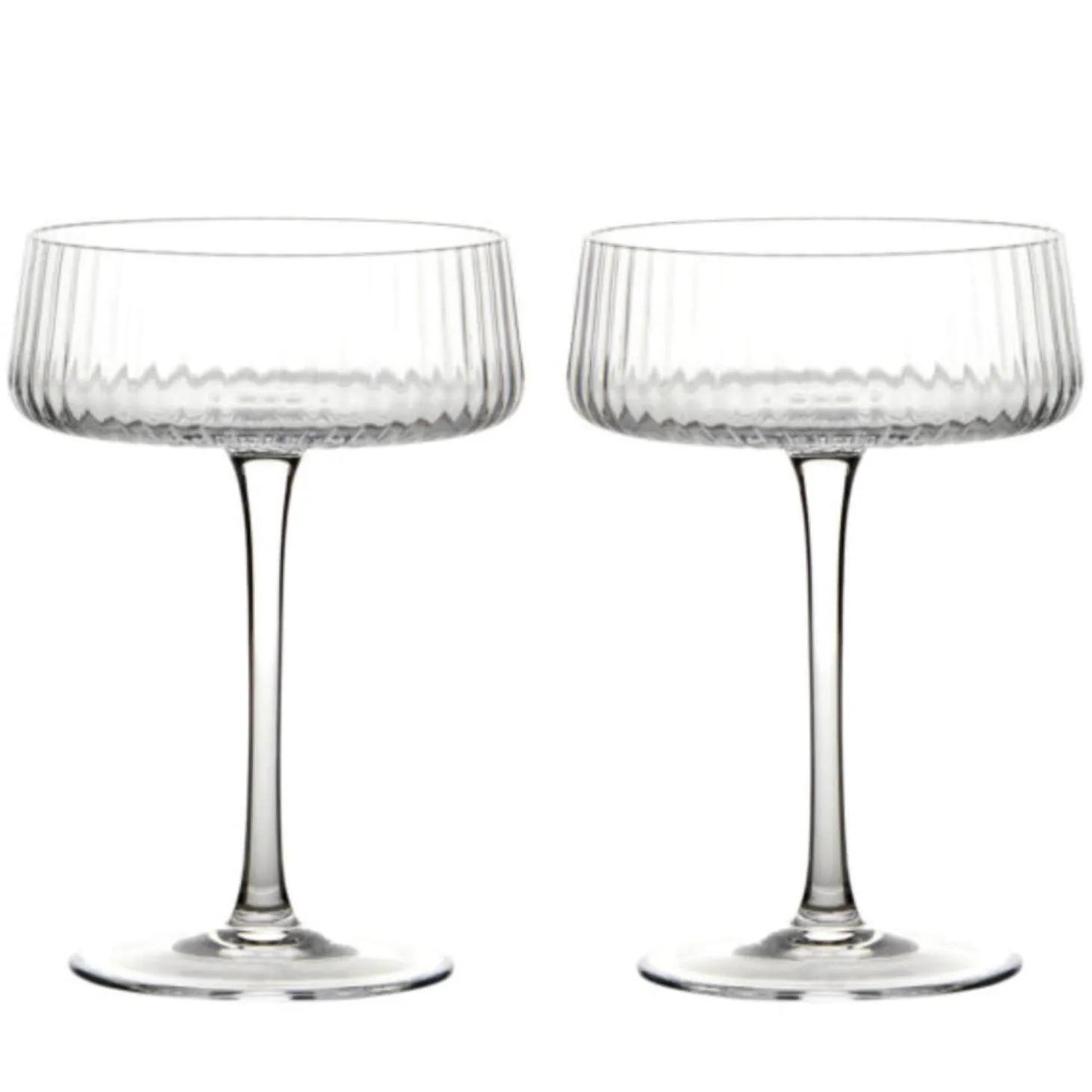 Designed in the UK by Anton Studio Designs London, these beautiful Empire Champagne Saucers are mouth-blown and handcrafted by skilled craftsmen making them unique as well as lovely to look at. The stylish contemporary design of a delicate vertical optic going up and down the bowl that tapers at the top, creates a stunning effect. Impress your guests by serving their drinks in these delightful champagne saucers.
