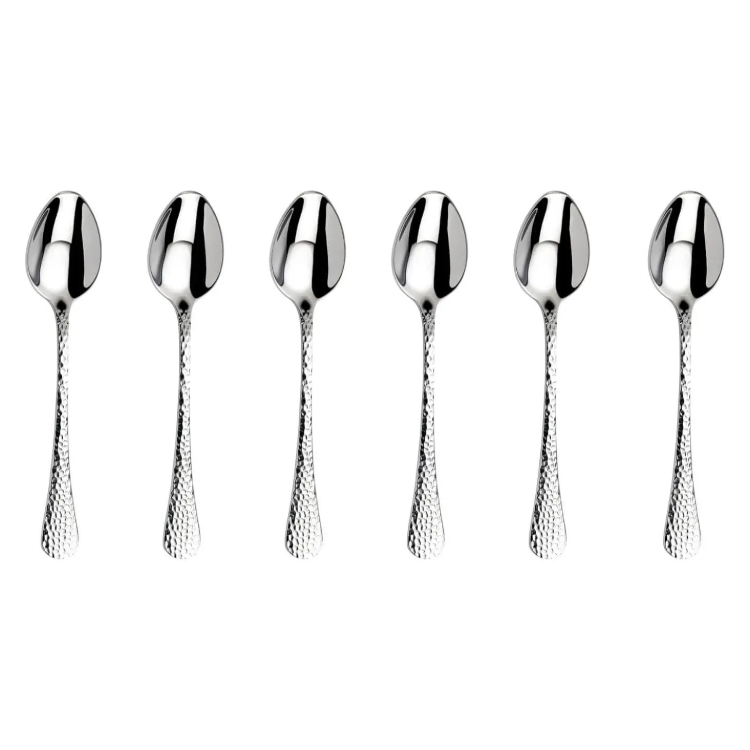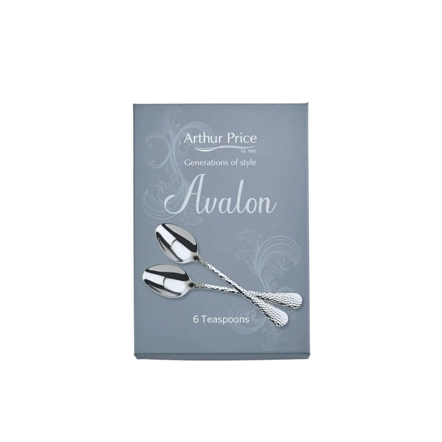 Arthur Price presents the Avalon Set of 6 Tea Spoons, beautifully crafted from the finest 18/10 Sovereign Stainless Steel using the very best chromium and nickel. This stylish set, with its hammered handles flaring towards the end, will certainly add a touch of elegance to your dining table.