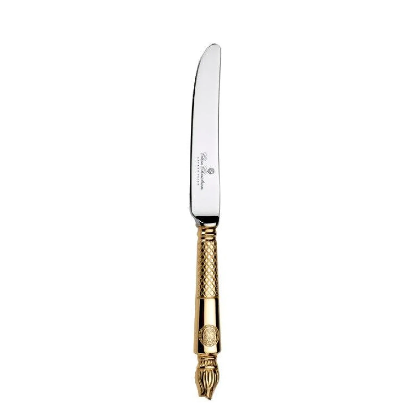 The Arthur Price Empire Flame All Gold Dessert Knife has been designed by British designer Clive Christian who’s passion for luxury is reflected down to every last detail. Each item in the set has been crafted from 18 / 10 stainless steel and has intricate detailing with an all gold plated finish and imperial flame finials. This item includes a lifetime guarantee.