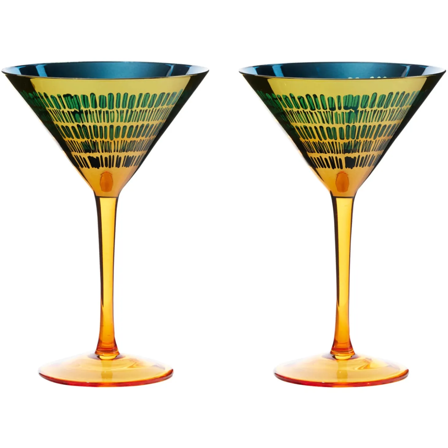 Create a beautiful atmosphere with this set of 2 stunning Cocktail Glasses by Artland as part of their Fiesta range. With the unusual design of a mirrored finish in ambers and blues, both inside and outside with a design that encircles around the bowl of the glass You can’t help but impress your guests whilst entertaining with these glasses. Perfect as a gift or as a treat for yourself.