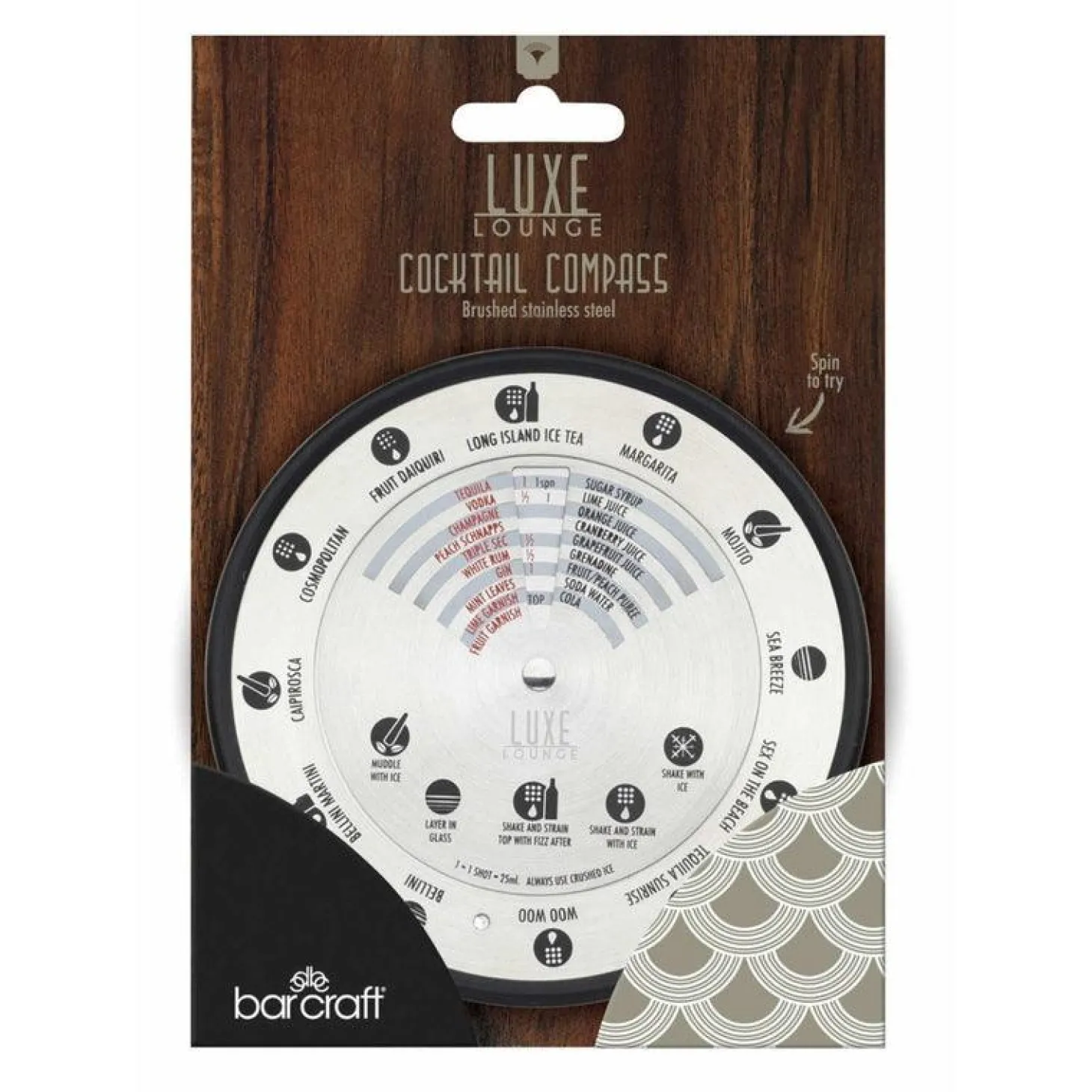 Master the art of creating exciting cocktails with the Barcraft Luxe Lounge Stainless Steel Cocktail Compass. Just move the dial to your choice of cocktail and follow the favourite recipe.