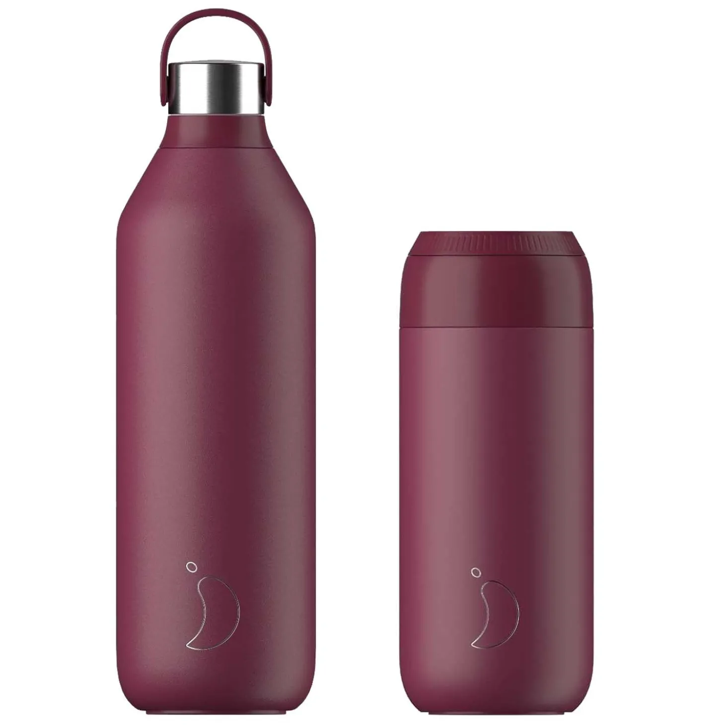 Enjoy hot and cold drinks with the Chilly’s Series 2 1 litre hydration bottle & 500ml coffee cup set in plum red. Combining the successful qualities of their original series to evolve their design into something transformative. Each water bottle in the Series 2 collection has a double-walled design that keeps liquids cold for up to 24 hours and hot for up to 12 hours whilst the coffee cup will keep liquids hot for up to 4 hours, without burning your hands. Featuring a rotating lock mechanism for secure sipping for added safety.Â