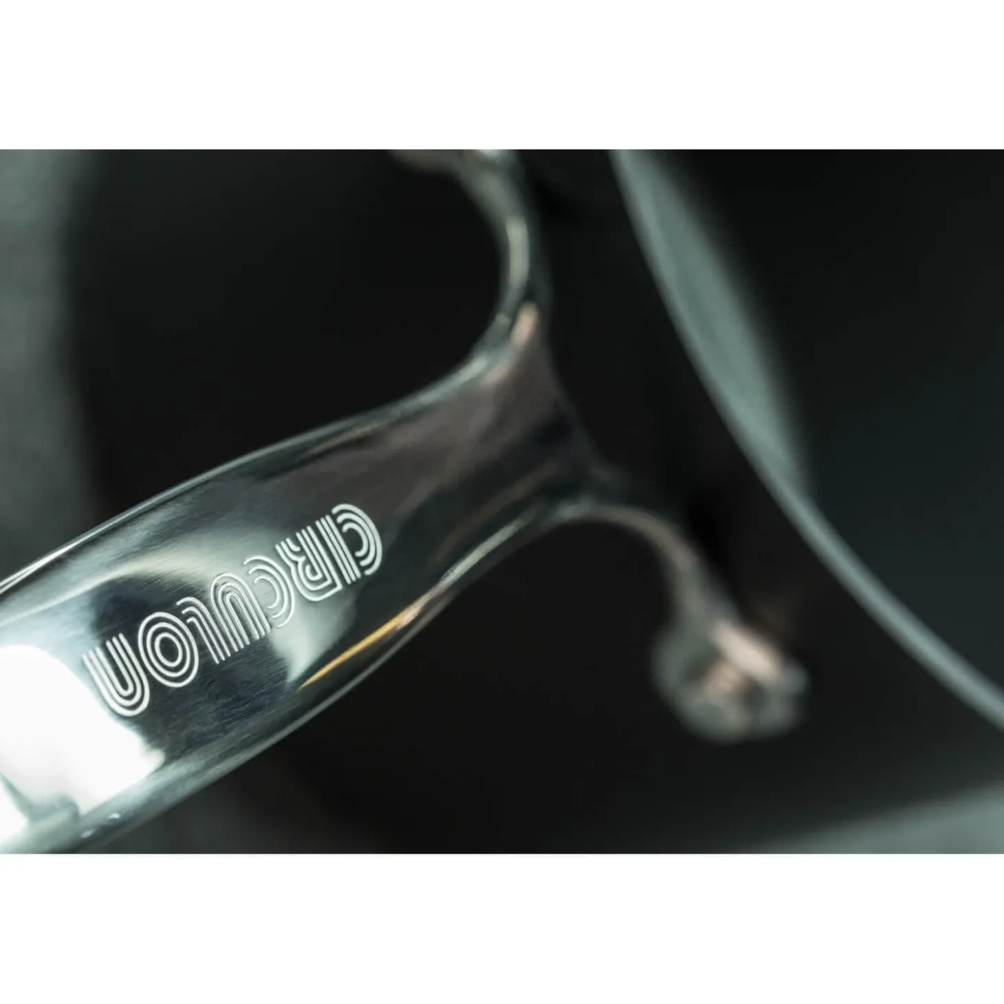 Circulon presents their non-stick 25cm skillet pan from the Style Hard Anodised series of high-performance cookware. Ideal for frying ingredients to make curries, eggs and other dishes. Created using heavy-duty alloy with an induction suitable base. Each piece of cookware in the collection has an ergonomic riveted handle for maximum comfort and control. On the surface and exterior of the pans, they are coated with an incredibly resilient non-stick coating that lasts up to 15x longer to ensure easy release, cleaning and healthy cooking by limiting the need for oils and fats. Includes a lifetime guarantee.