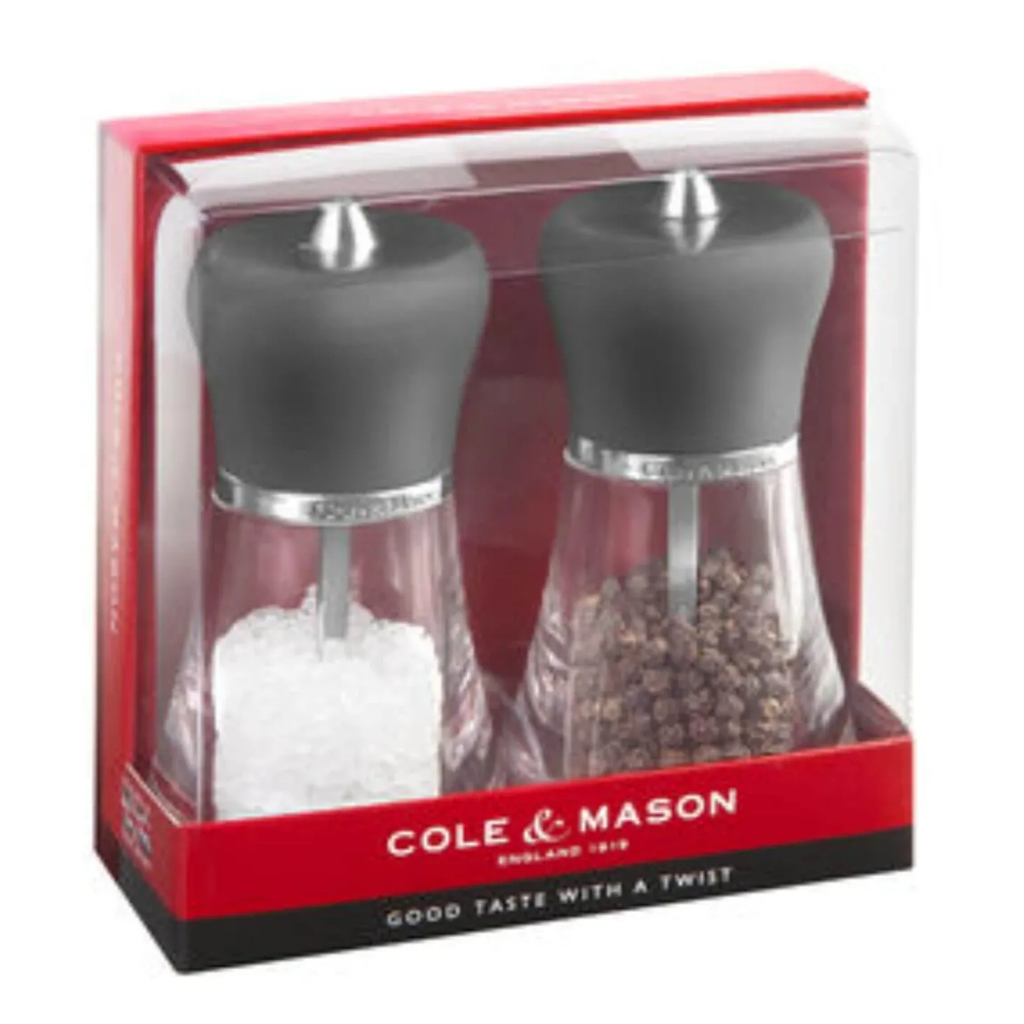 Cole & Mason presents the Napoli Salt & Pepper Mill Set featuring the precision+ carbon steel mechanism and ceramic mechanism for the salt mill that they are known for, making these mills a hardwearing functional addition to your kitchen. The body is of a clear acrylic with a black soft-touch top, these mills will add a stylish look to your countertop or table. Gift boxed.