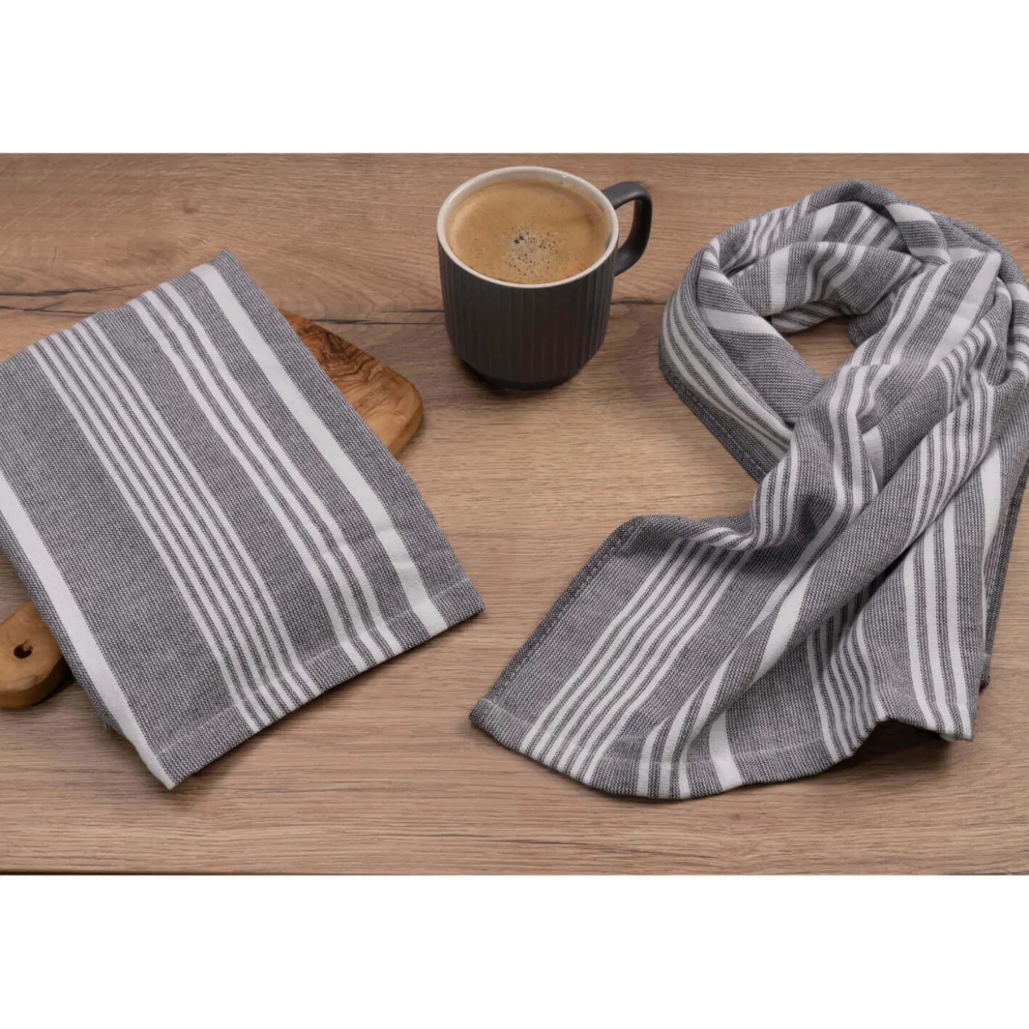 - Pack of 2 Tea Towels – Grey Stripe