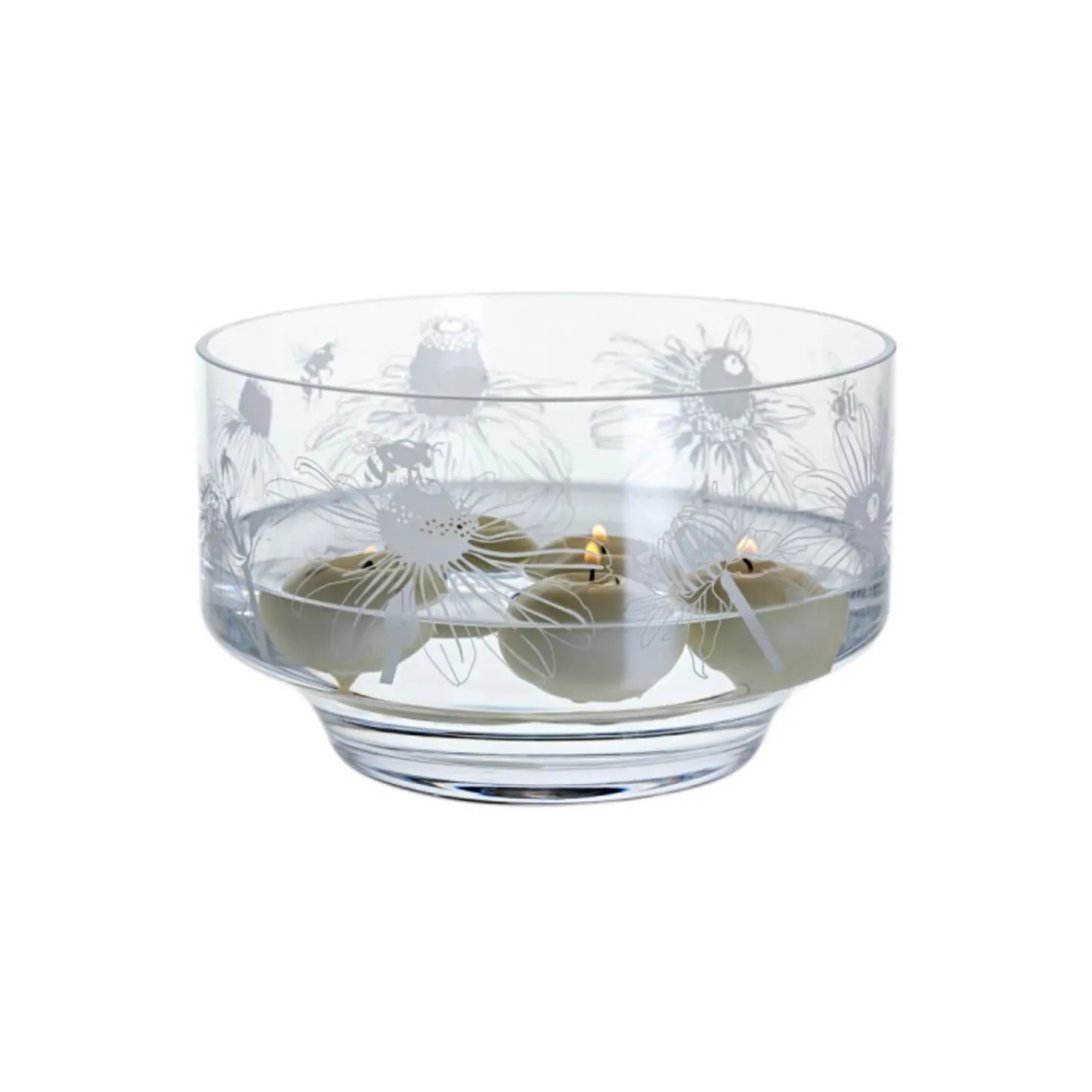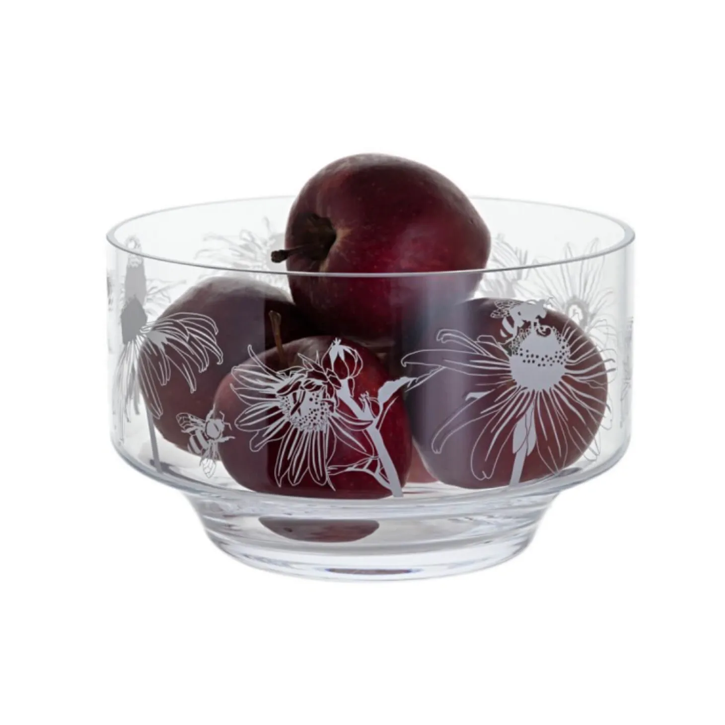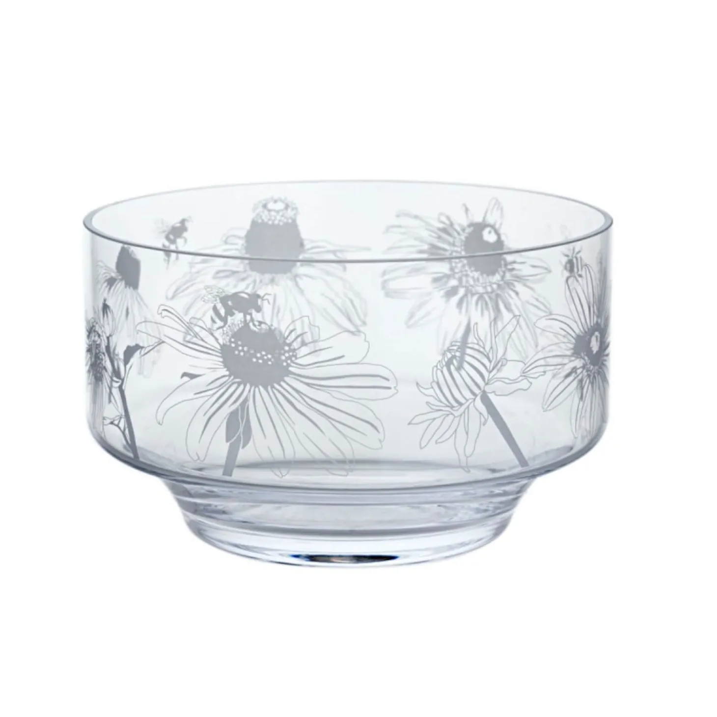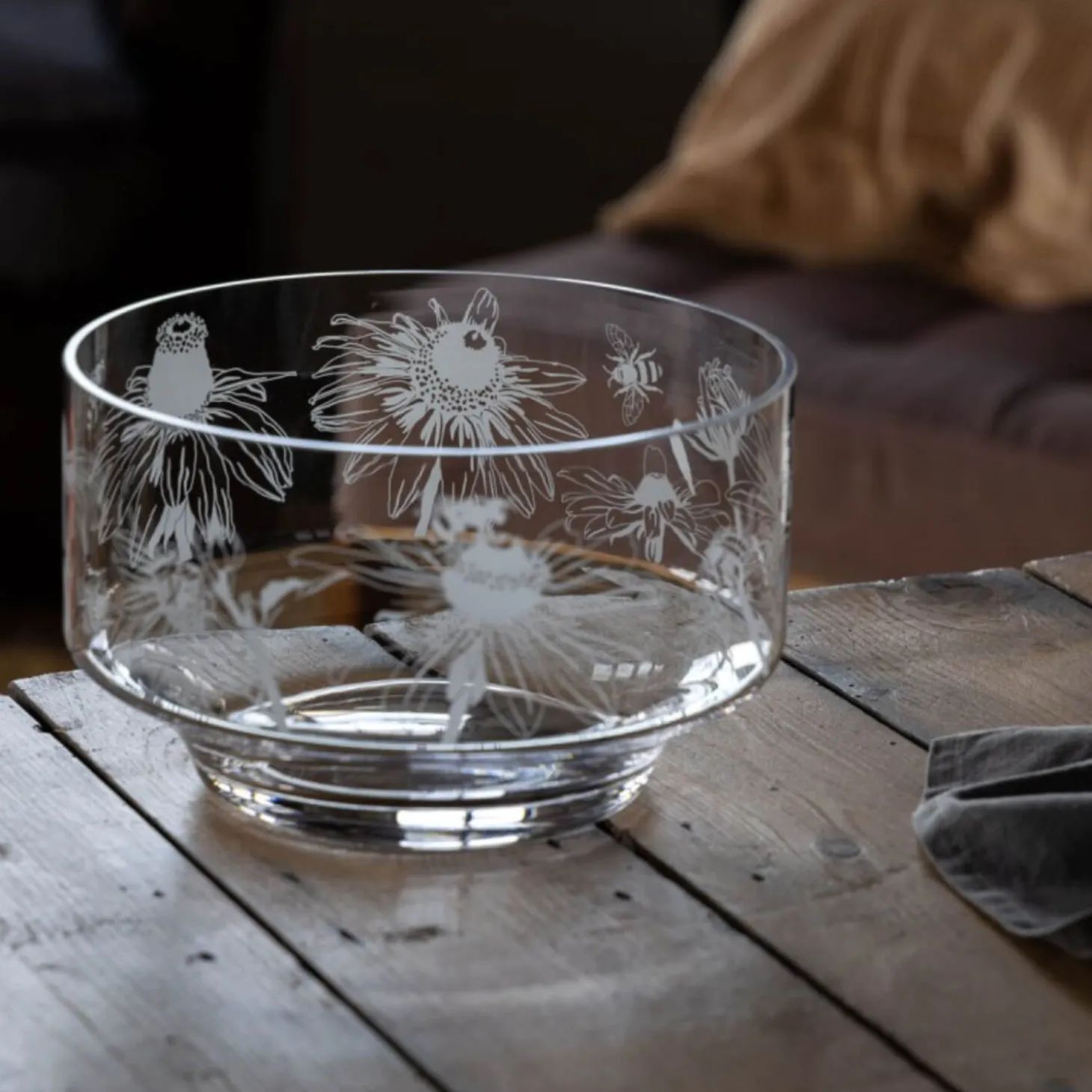 Dartington presents the Rudbeckia & Bees Bowl as part of their Bloom range, this stunning bowl is handmade with star-shaped flowers and bees beautifully etched into the glass to create a stunning effect, with or without contents, this bowl is gorgeous to look at, making it ideal as statement centrepiece for your table.