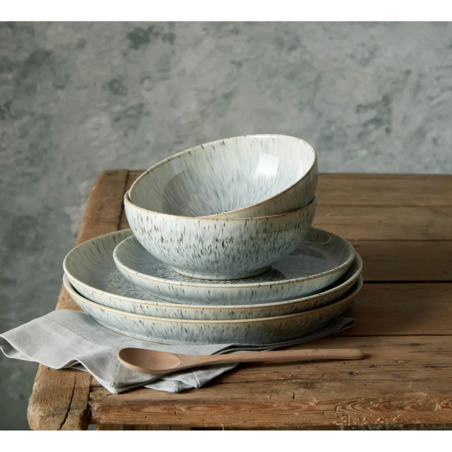 Denby presents this 22cm pasta bowl which forms part of the Halo Speckle range. Perfect for pasta and rice dishes including Asian food, as well as warm and cold salads. Its unique design incorporates two tones of glaze to produce a striking, speckled finish. Each piece is made by Denby in Derbyshire from vitrified stoneware giving strength, durability and chip resistance. Includes a 10-year guarantee.