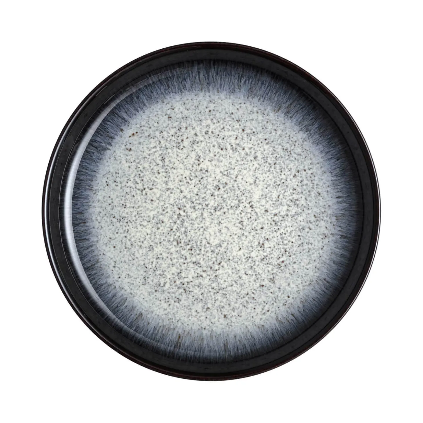 Denby presents their Dinner Plate in Coupe as part of their Halo range. Made from strong and durable Derbyshire clay in Denbys own factory where they have been based for over 200 years. The Halo effect is produced by true artisans using challenging techniques and a special secret two-tone glaze which is expertly fused together creating a striking speckled effect. The deep Coupe design gives the plate taller sides and is ideal for more liquid foods. Whether you’re serving a light lunch or creating a contemporary table for your dinner guests, this plate is ideal for adding to your pottery collection.