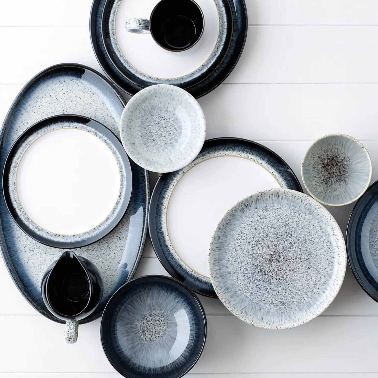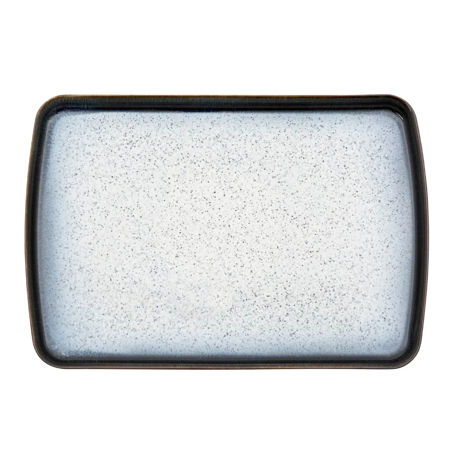 Denby presents their Large Rectangular Platter in their unique Halo design. Made from strong and durable Derbyshire clay in Denbys own factory where they have been based for over 200 years. The Halo effect is produced by true artisans using challenging techniques and a special secret two-tone glaze which is expertly fused together creating a striking speckled effect. The stunning colours of this platter have been created to make your food even more appealing making it an eye-catching centerpiece for your table.