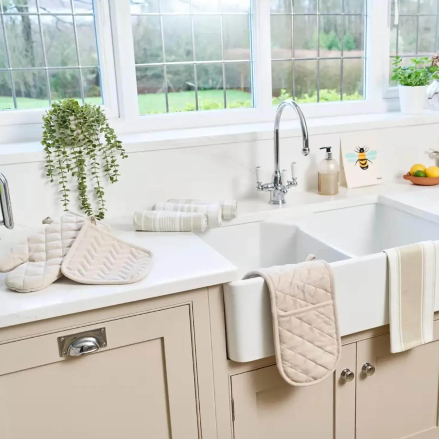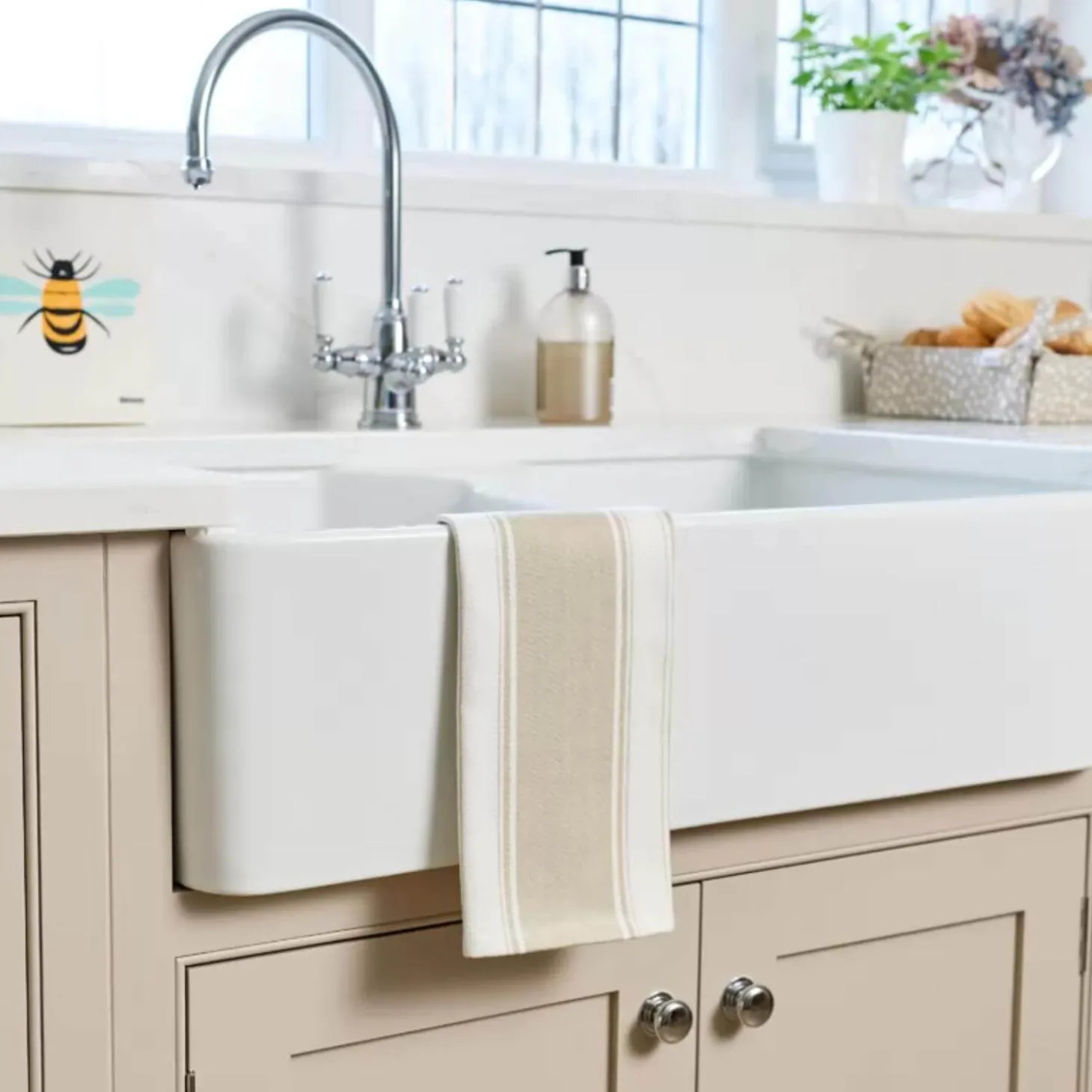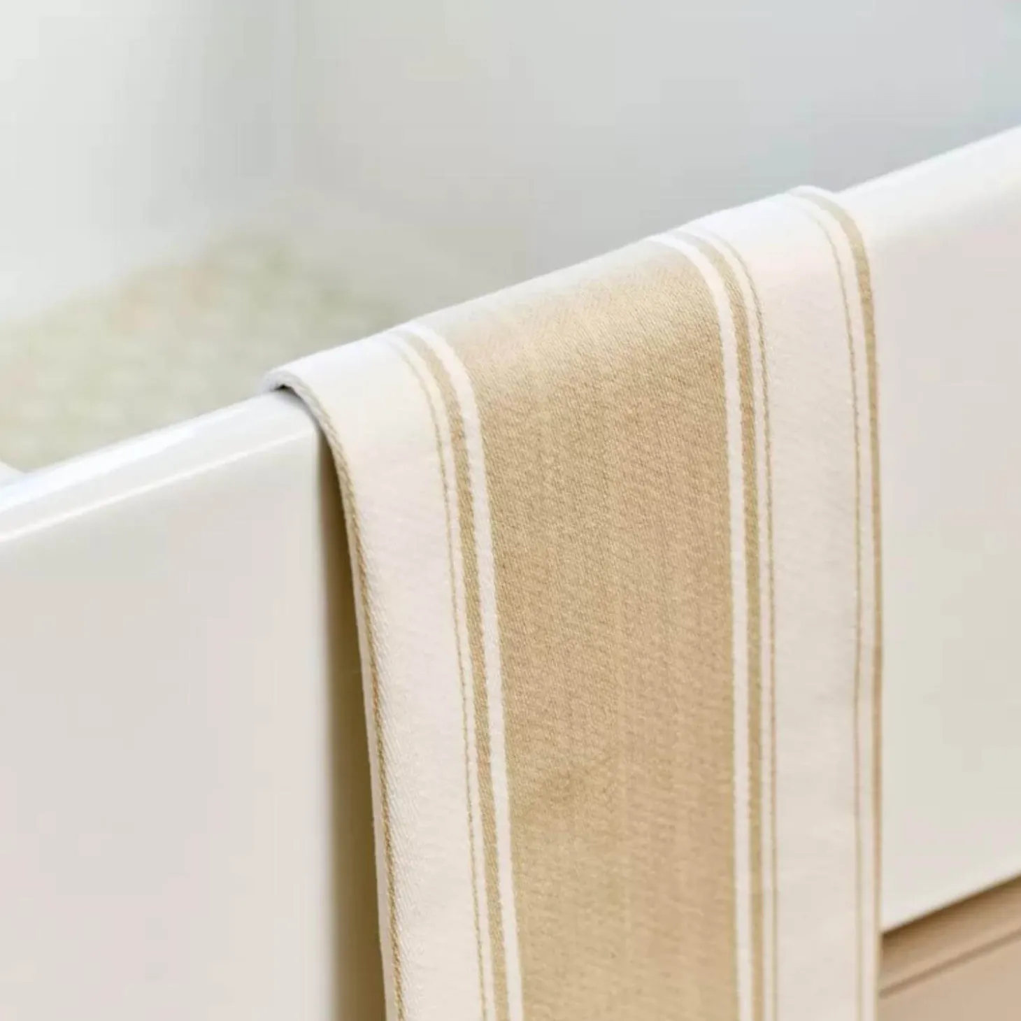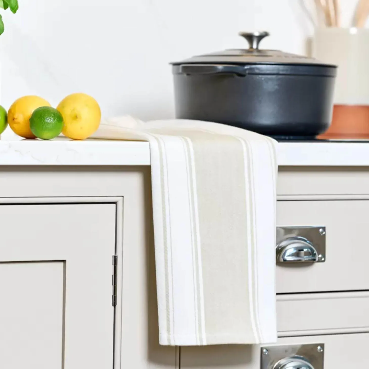 Dexam presents the Love Colour Striped Tea Towel in Stone, perfect for drying up all your dishes and pans. This tea towel features a large striped traditional pattern that is suitable for all busy kitchens.