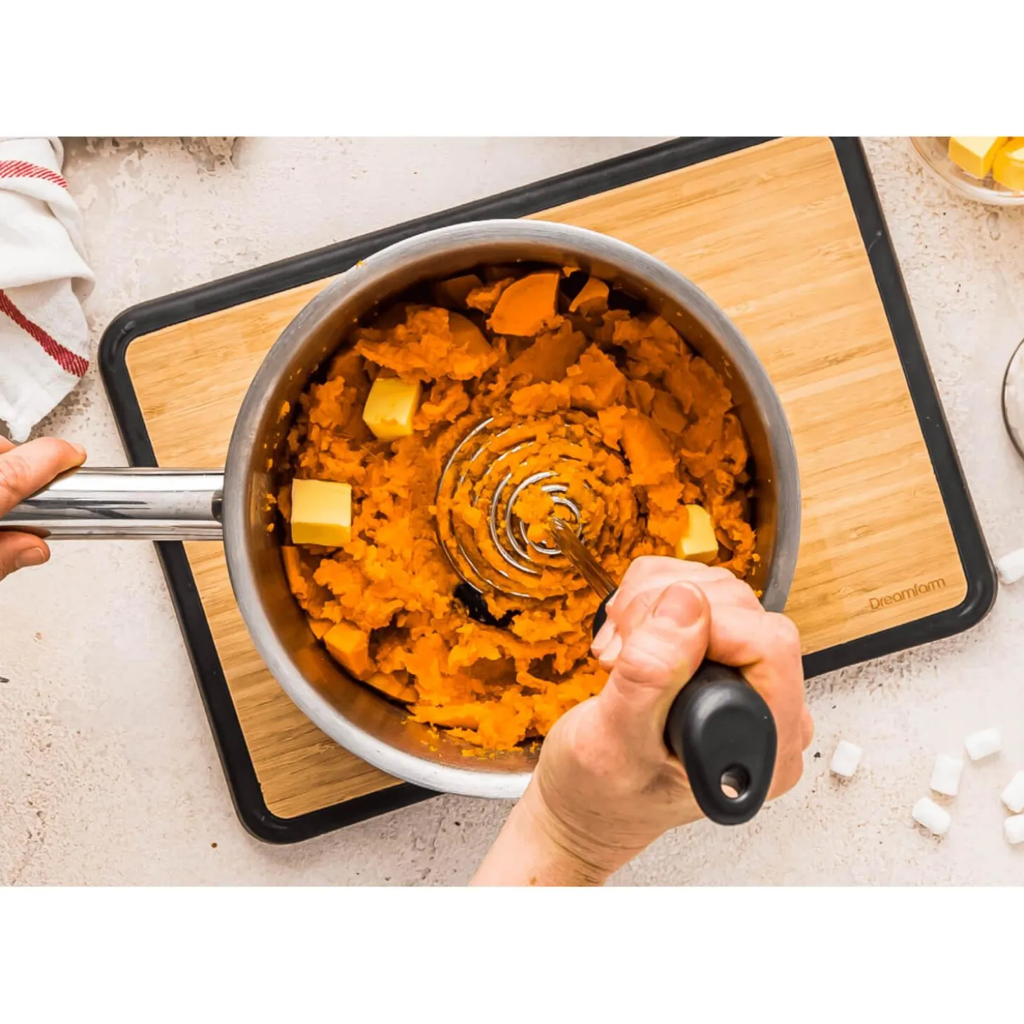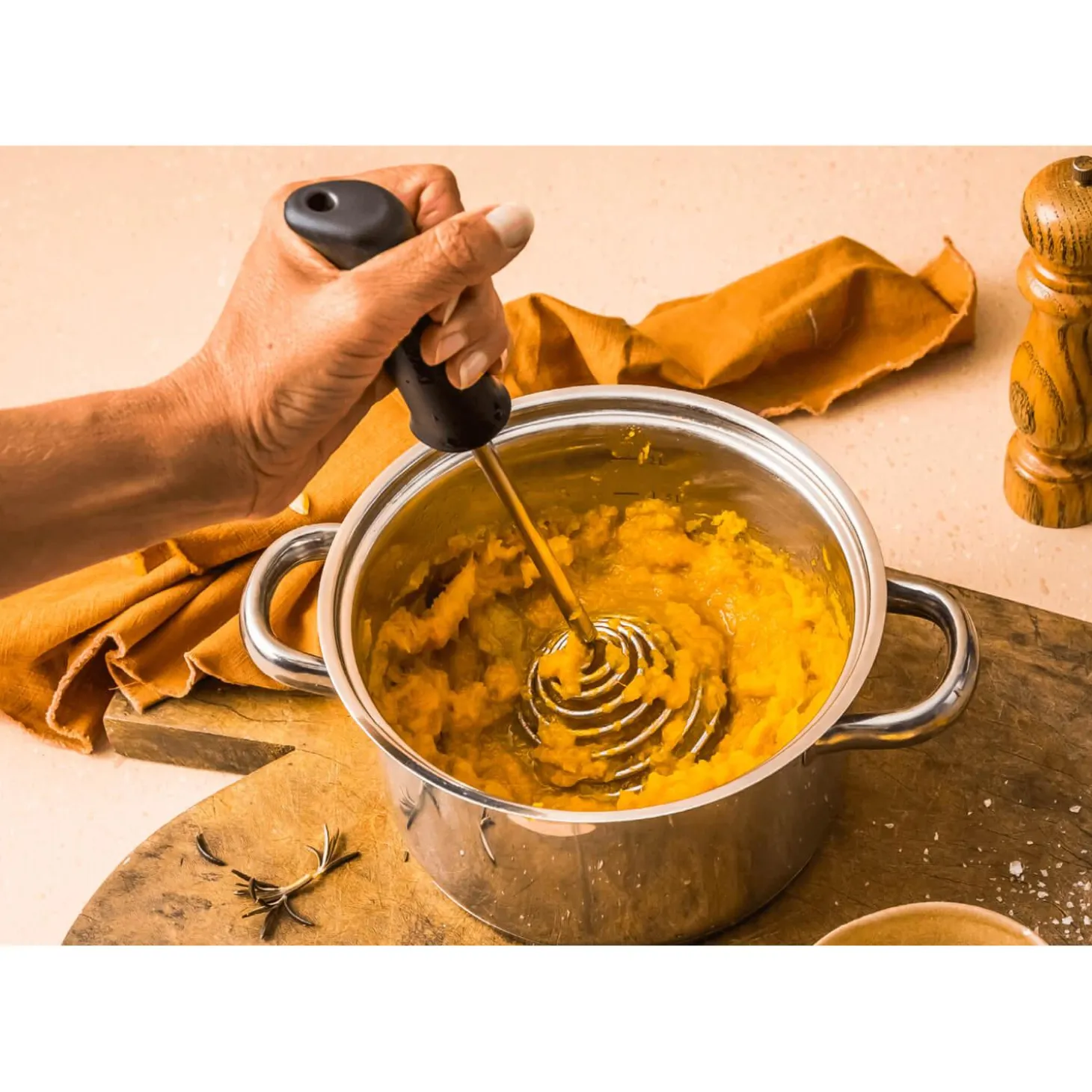 - Spring coil masher for perfect fluffy mash