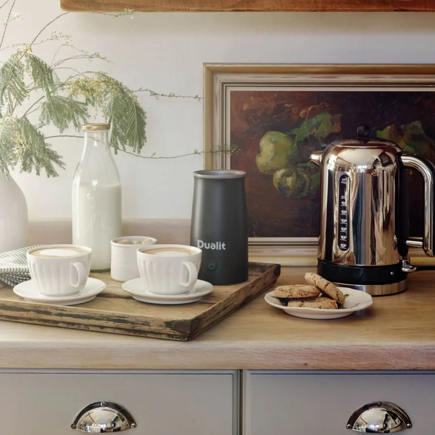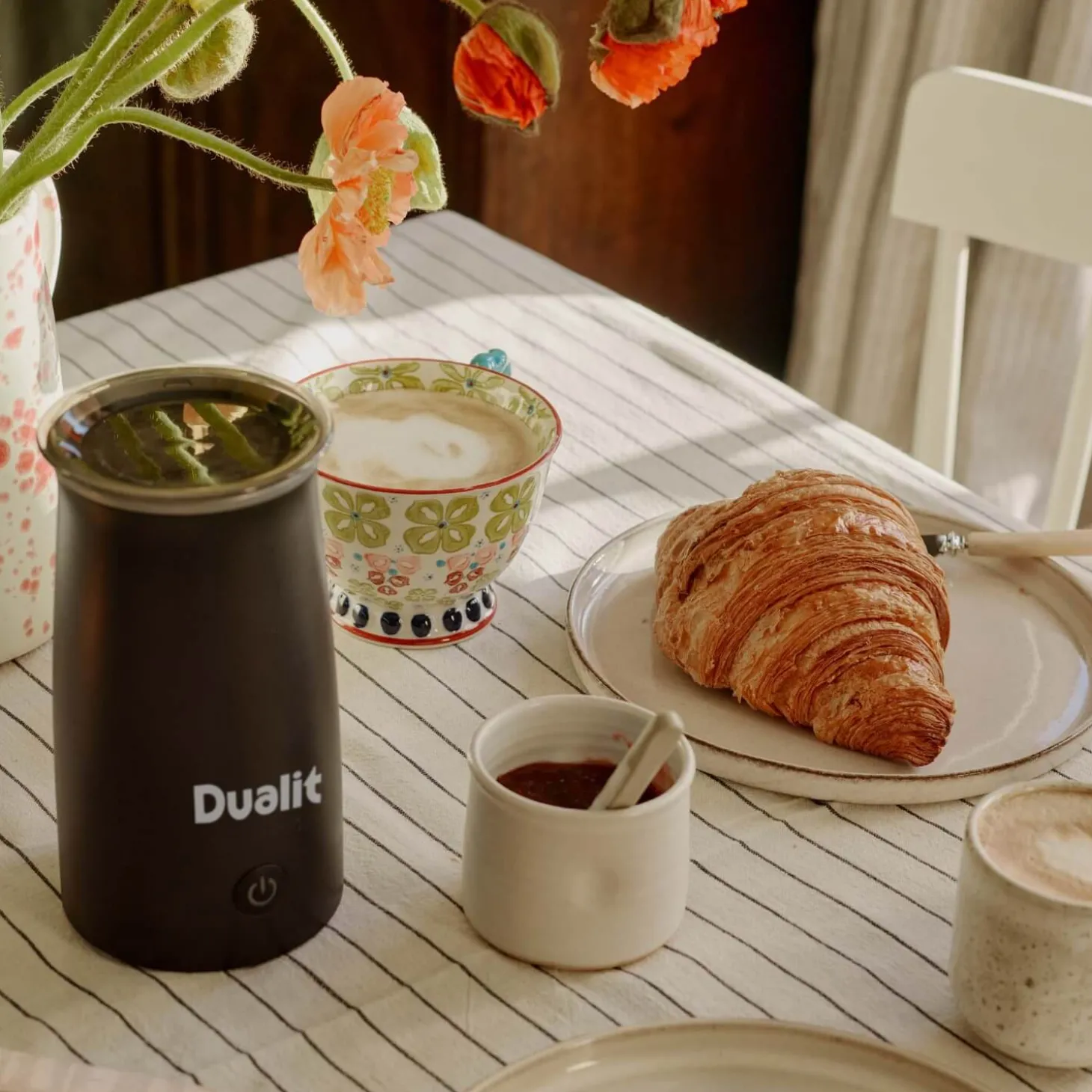 Dualit presents the Hot Chocolate Maker & Milk Frother in Black, ideal for creating perfect barista-style drinks in your own home in just minutes. The unique accessories provided ensure perfectly frothed milk for your coffee of choice, mochas, hot chocolate, milkshakes and more. Dualit, a UK company, has been designing and producing innovative products for over 75 years, recommends using cold, ‘barista-grade’ plant-based or dairy milk for best results with their frother.