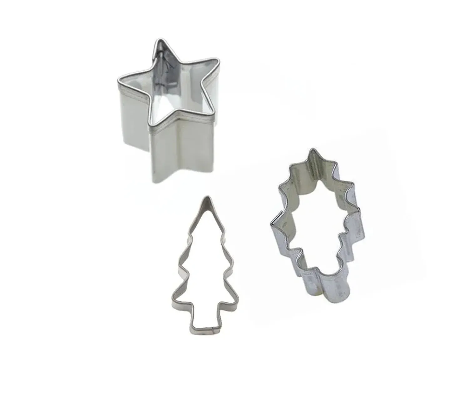 Eddingtons presents this set of 3 stainless steel Christmas mince-pie and icing cookie cutters. Choose from 5 different designs which include a Christmas tree, stocking, snowman, star and gingerbread man and bake-themed cookies and other treats for friends and family. Created from stainless steel which is easy to clean and durable, making each item reusable each Christmas.