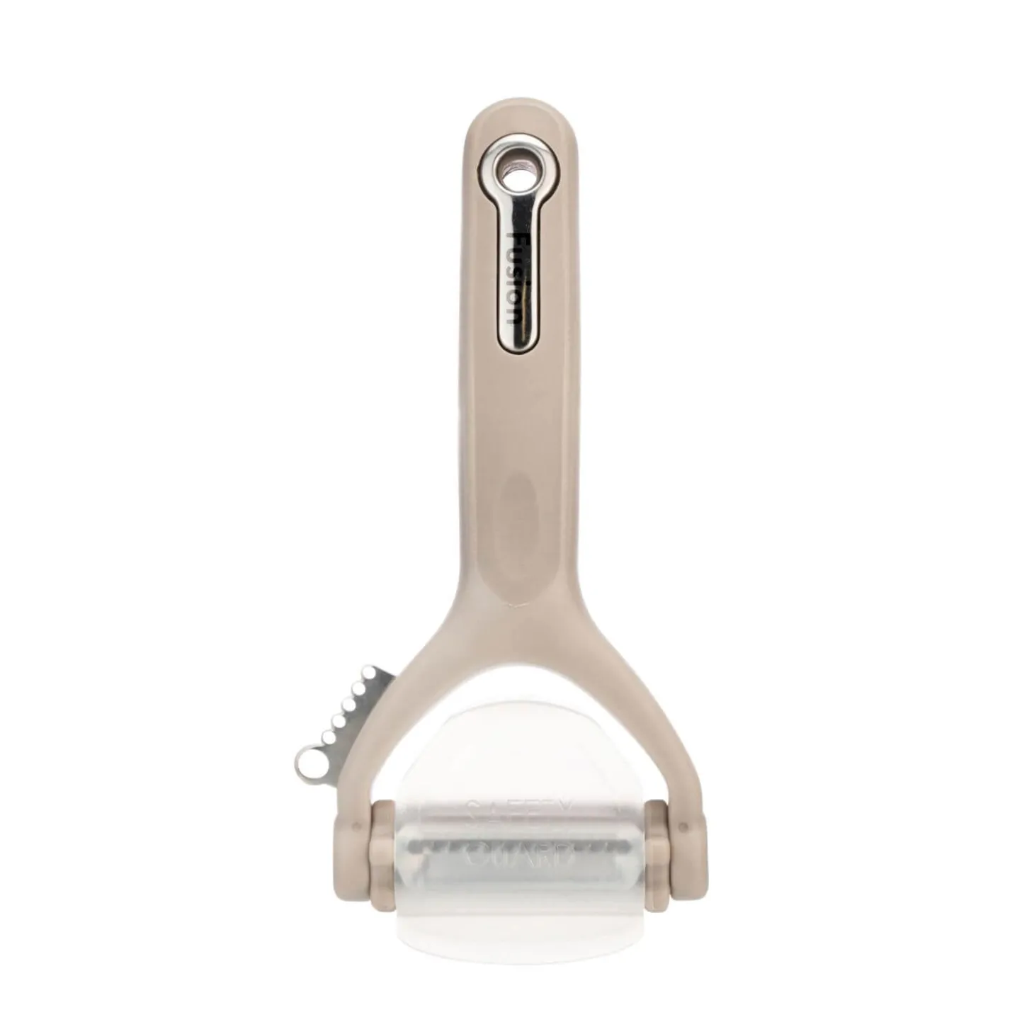 Fusion presents the Multi Peeler in Grey as part of the Fusion Twist range, consisting of many colours allowing you to mix and match to coordinate with your kitchen decor. A modern design with practical functionality, on the side is a zester and the larger hole is a herb stripper. Comprised of three blades, straight edge for regular peeling, a micro-serrated blade for kiwis or similar and the third blade is a julienne peeler. A great tool to add to your utensil drawer.