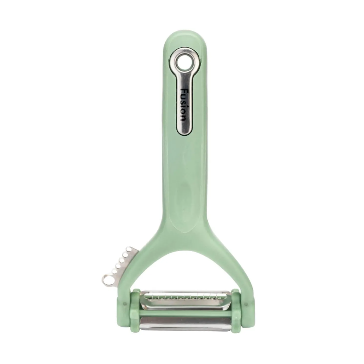 Fusion presents the Multi Peeler in Mint as part of the Fusion Twist range, consisting of many colours allowing you to mix and match to coordinate with your kitchen decor. A modern design with practical functionality, on the side is a zester and the larger hole is a herb stripper. Comprised of three blades, straight edge for regular peeling, a micro-serrated blade for kiwis or similar and the third blade is a julienne peeler. A great tool to add to your utensil drawer.