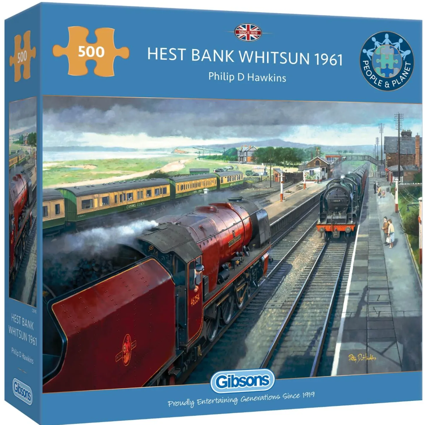 Gibsons presents the ‘Hest Bank Whitsun 1961’ 500 piece jigsaw puzzle, featuring a beautiful illustration of two steam trains coming into a station with passengers waiting to board. All Gibsons jigsaws are created using sustainably sourced paper, 100% recycled puzzle board, the pieces are thick and strong and designed to fit together perfectly. This puzzle would make a wonderful gift or a treat for yourself this coming festive season.