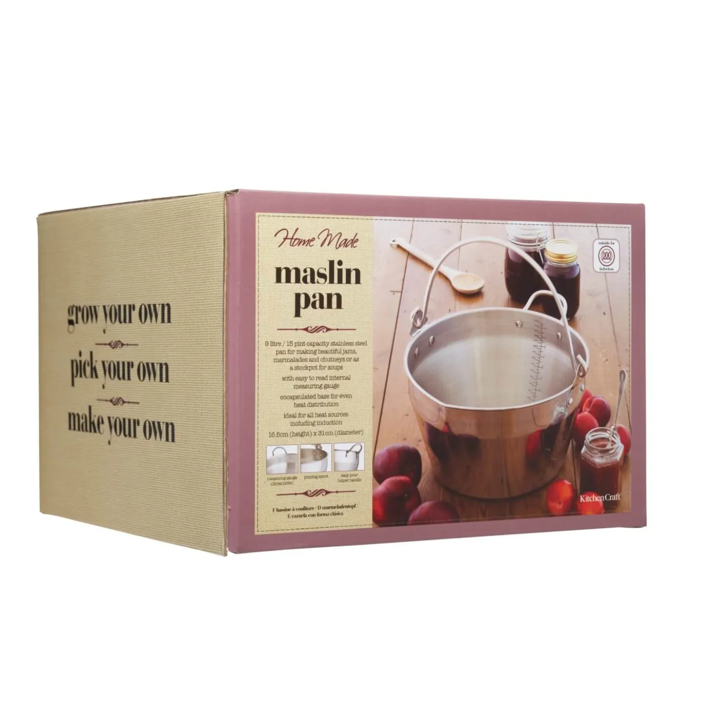 Home Made presents the 31cm Maslin Pan, created using high-quality stainless steel, featuring internal measurement markings perfect for when creating fresh jams, marmalades and chutneys. The encapsulated base provides even heat distribution across all hobs including induction.