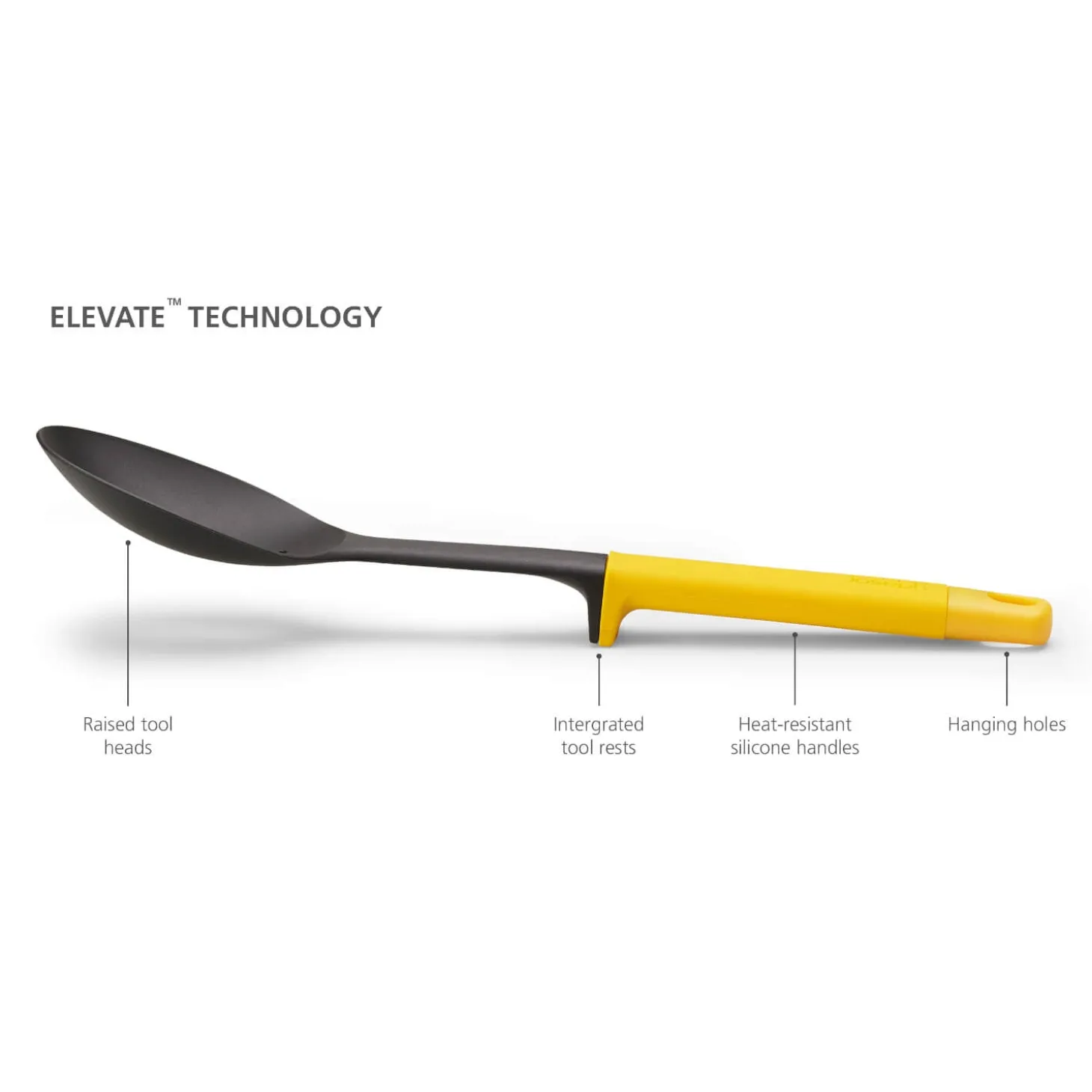 Joseph Joseph presents the 6-Piece Elevate Utensil Set with Storage Stand, these utensils have been designed to incorporate weighted handles with integrated tool rests to allow you to rest them down on your countertop keeping it clean and hygienic. This Elevate set includes a slotted spoon, a solid spoon, a slotted turner, a spaghetti server, a flexible turner and a ladle, all of them have nylon heads and ergonomic handles for comfort of use. The carousel rotates easily for you to be able to select the utensil you need whilst cooking. A great utensil set for all cooks kitchens.