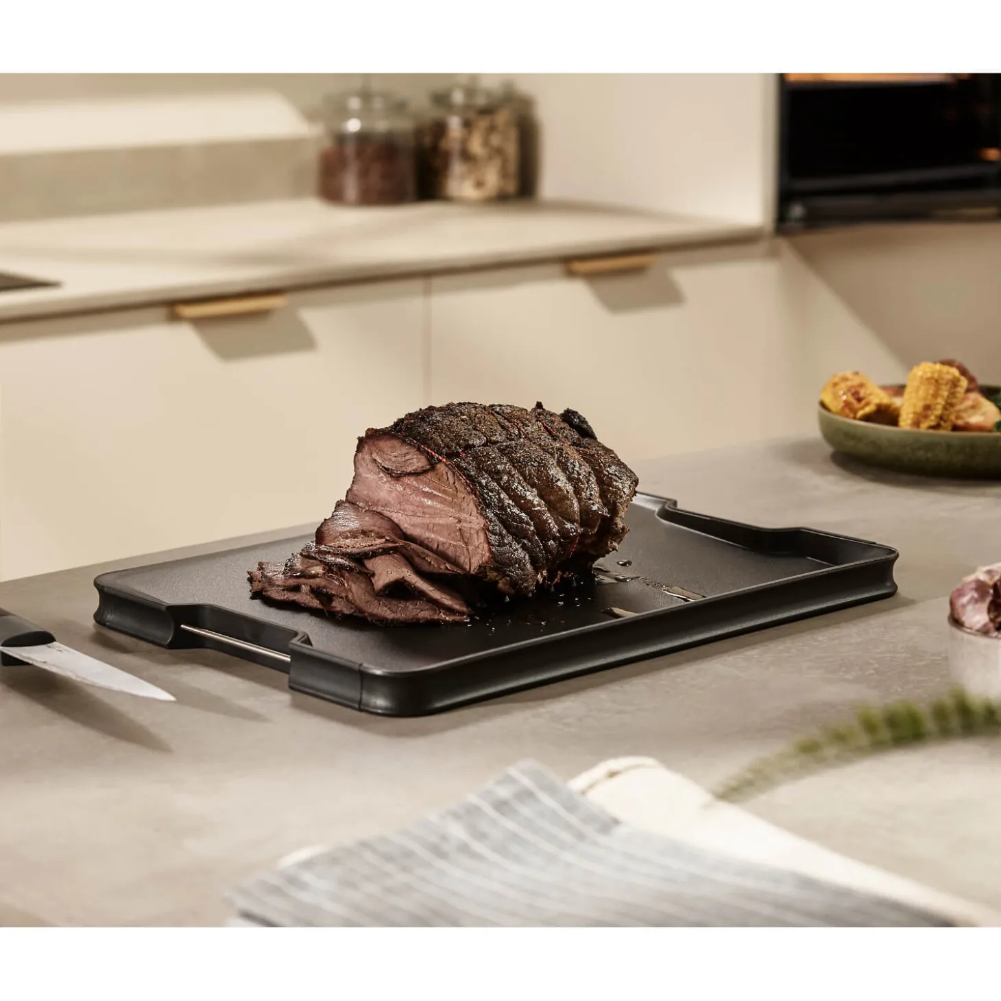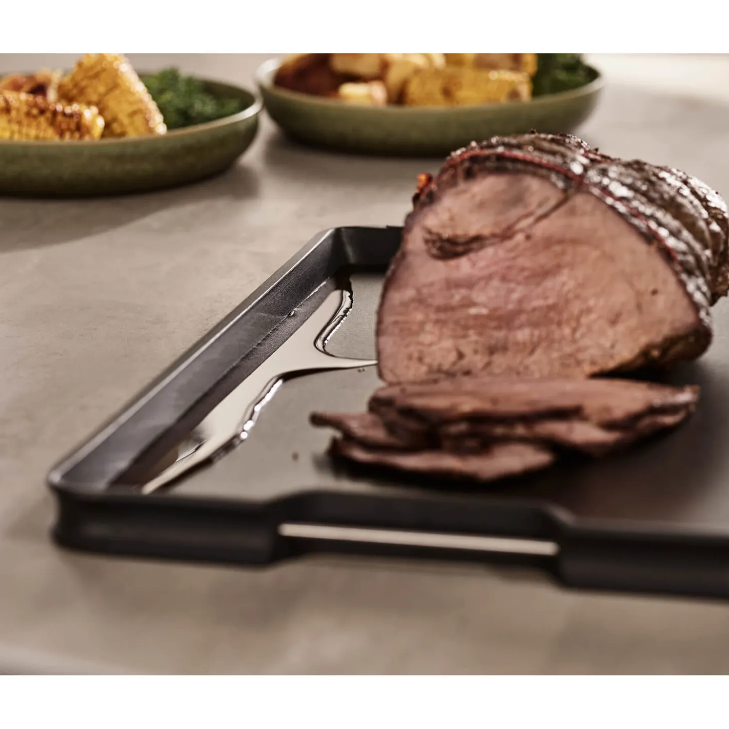- Integrated meat grip on one side for carving joints
