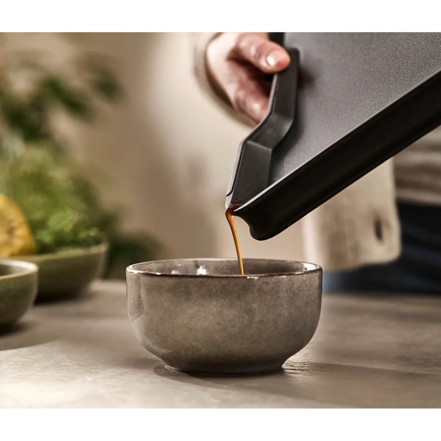 - Innovative sloping base and easy pour corners for collecting meat juices