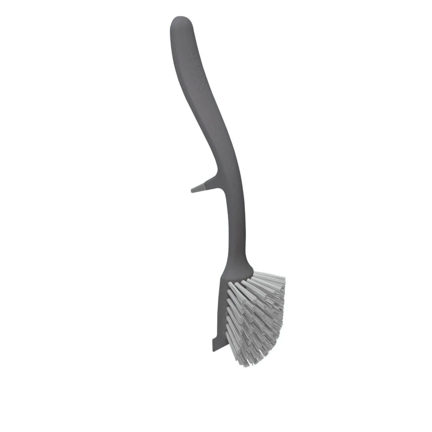 This Joseph Joseph Edge Dish washing-up brush is cleverly designed to rest securely on the side of your sink with the integrated sink rest enabling it to drain away without causing a mess on your worktop. The non-scratch curved brush head has an integrated pan scraper. This innovative design by Joseph Joseph helps to save space around your sink.