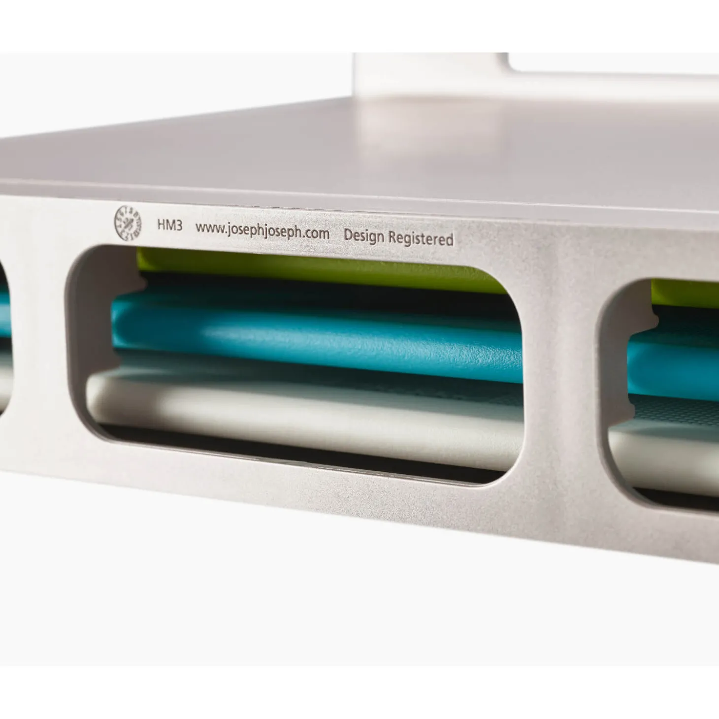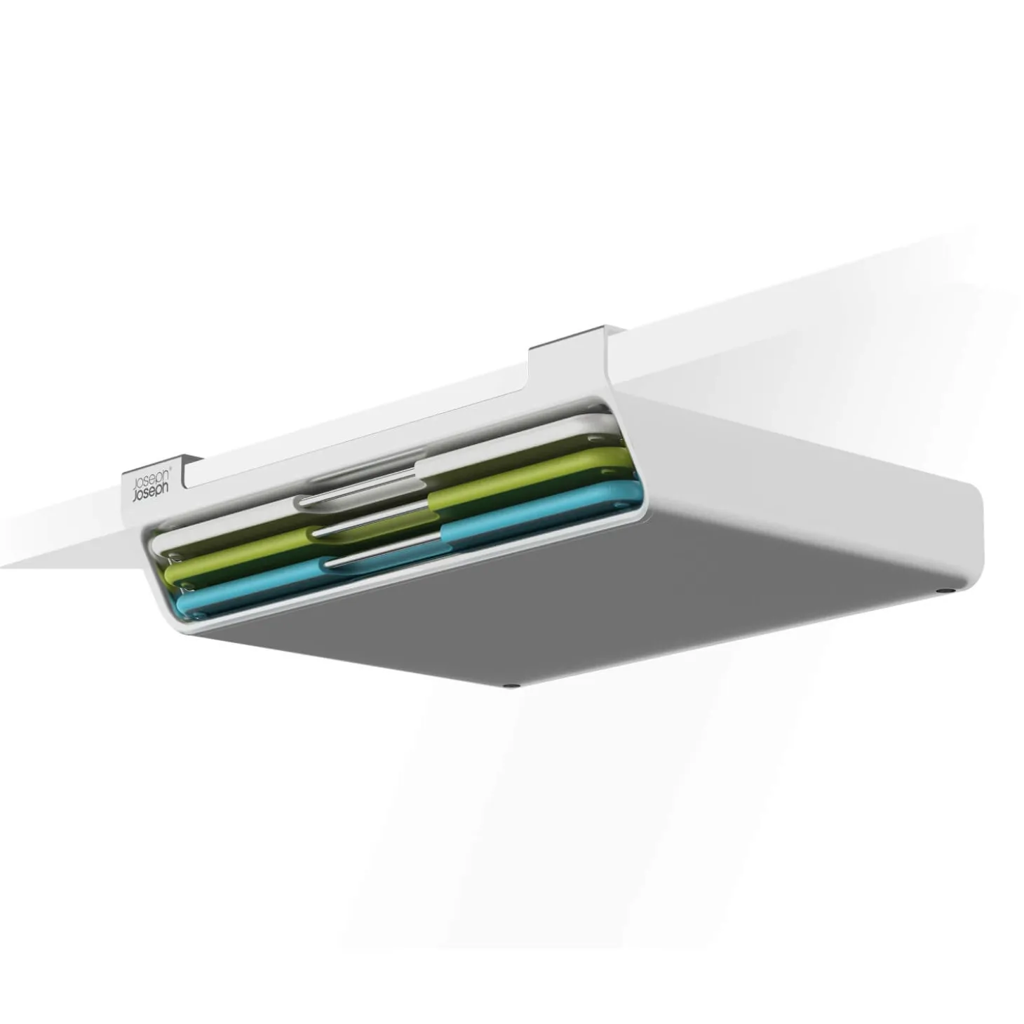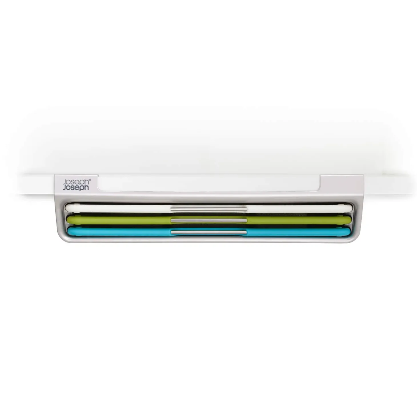 Joseph Joseph presents their Editions Folio Slim Chopping Board Set with multi-coloured boards. Featuring three double-sided colour-coded chopping boards, an ideal worktop addition to prevent cross-contamination when preparing different ingredients in the kitchen. With a slimline design for convenient storage and a tiered design for easy selection with each board having stainless steel handles. Each board is designed with safety and convenience in mind, such as a textured surface on each side that is knife-friendly and has non-slip feet which allow for secure use whilst chopping and mincing ingredients.Â