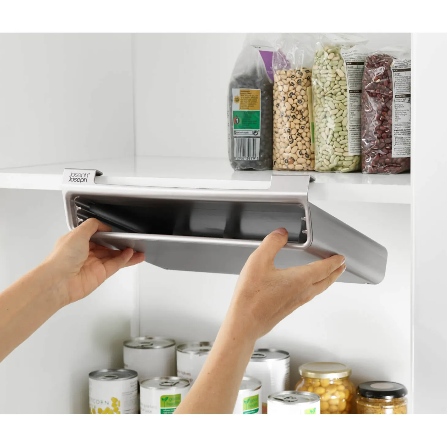 - Under shelf storage design to save space