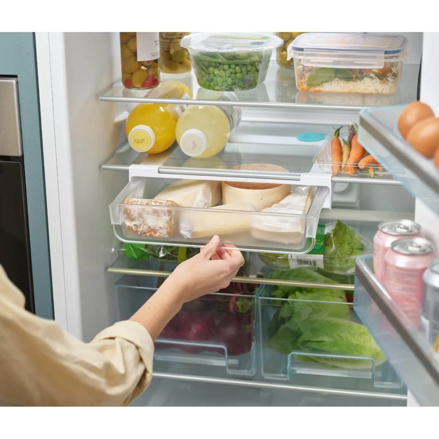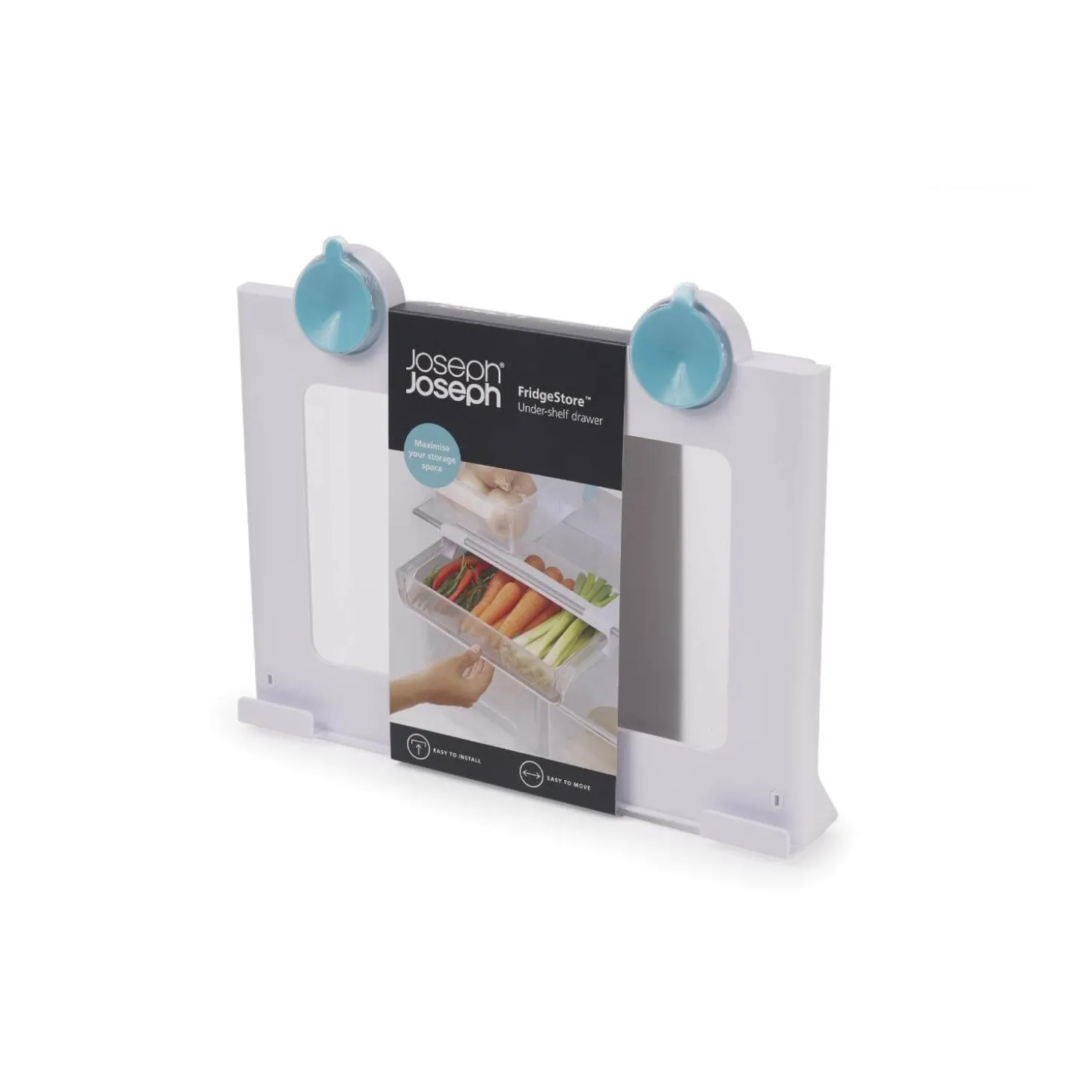 Joseph Joseph presents the Under Shelf Storage Drawer as part of their FridgeStore range. This drawer hooks under an existing shelf to create more fridge storage for your food. It’s a great fridge organizer!