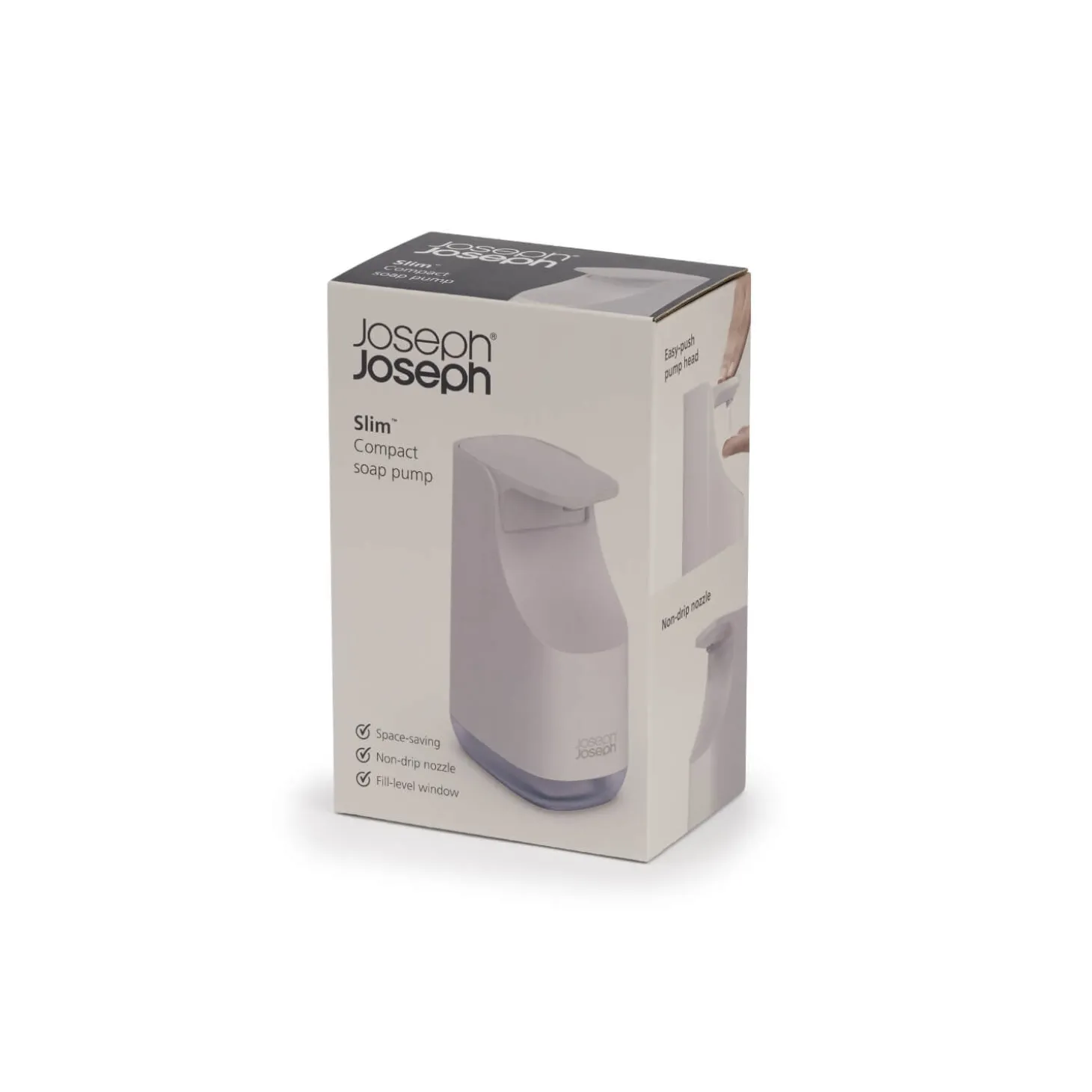 Joseph Joseph presents the Slim Compact 350ml Soap Pump in Ecru, with its slimline, space-saving design takes up less room without compromising on capacity. The Soap Pump has a non-drip nozzle and a large, easy pump head. A fill-level window makes it easy to see when the soap needs refilling.