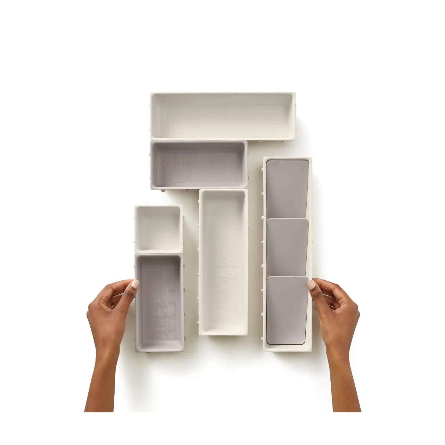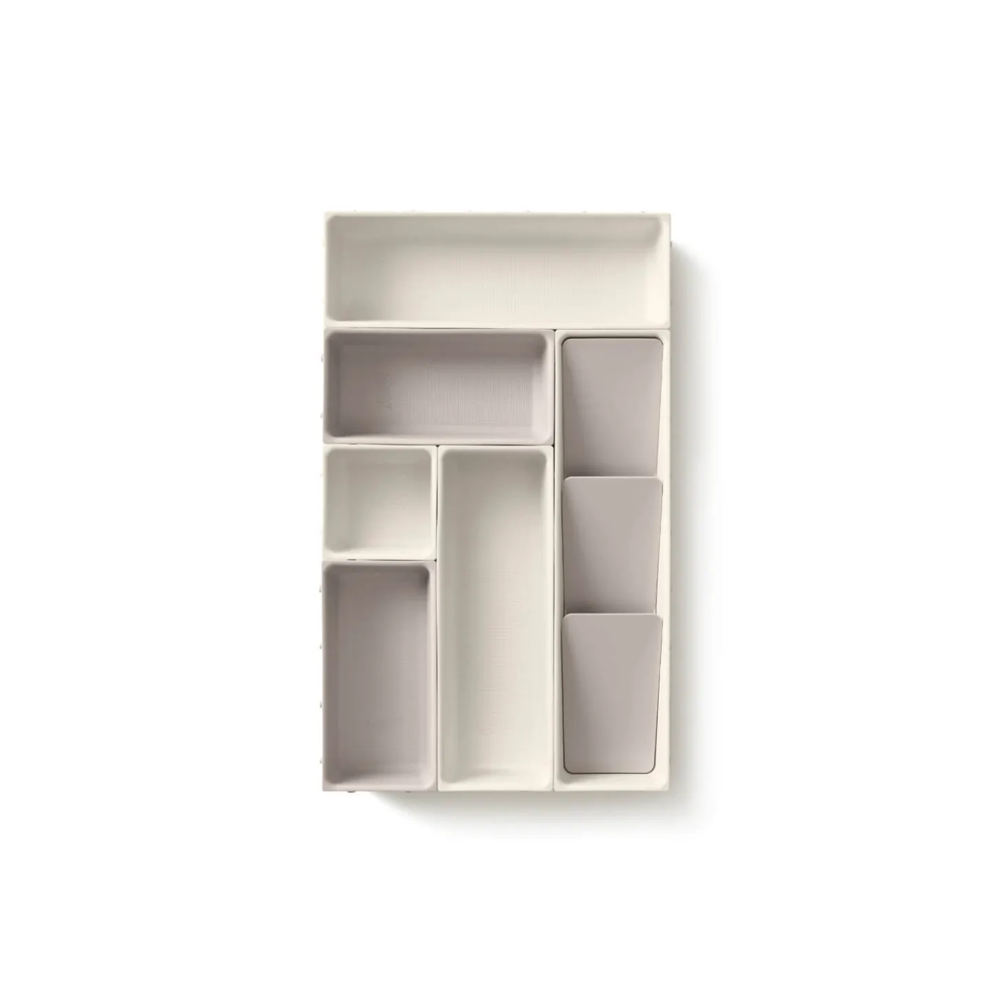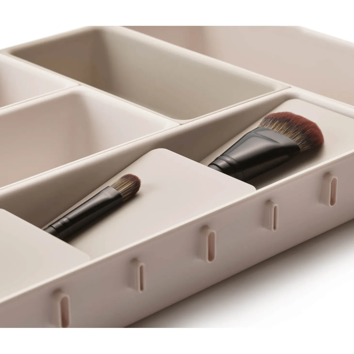 Joseph Joseph presents the Viva 7-Piece Make-Up Drawer Organiser in Shell, a brilliantly designed drawer insert allowing you to keep all your brushes, mascara, eyeliners, lip gloss and more in separate compartments that clip easily together. A number of sets can be joined to each other to create even more useful storage space for all your beauty products.