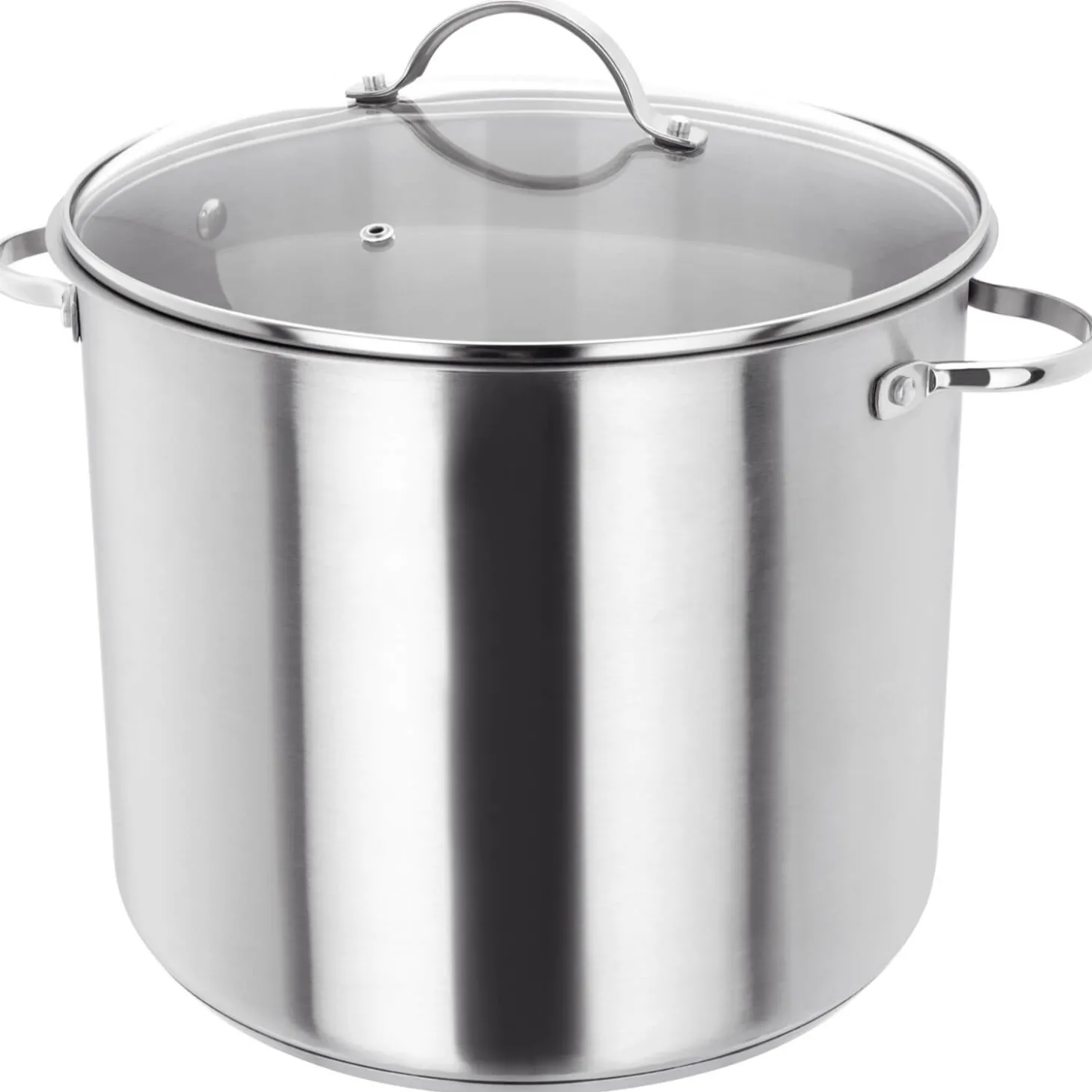 Judge presents the 28cm Essentials Stockpot with Glass Lid, with this classic stockpot, you can prepare a variety of dishes, including stocks, soups, stews, and pasta, all according to your family’s preferences. Its thick ‘hot forged’ base ensures even and efficient heat distribution, while its hollow stainless steel handles stay cooler than the solid ones, making it comfortable to use and transport.