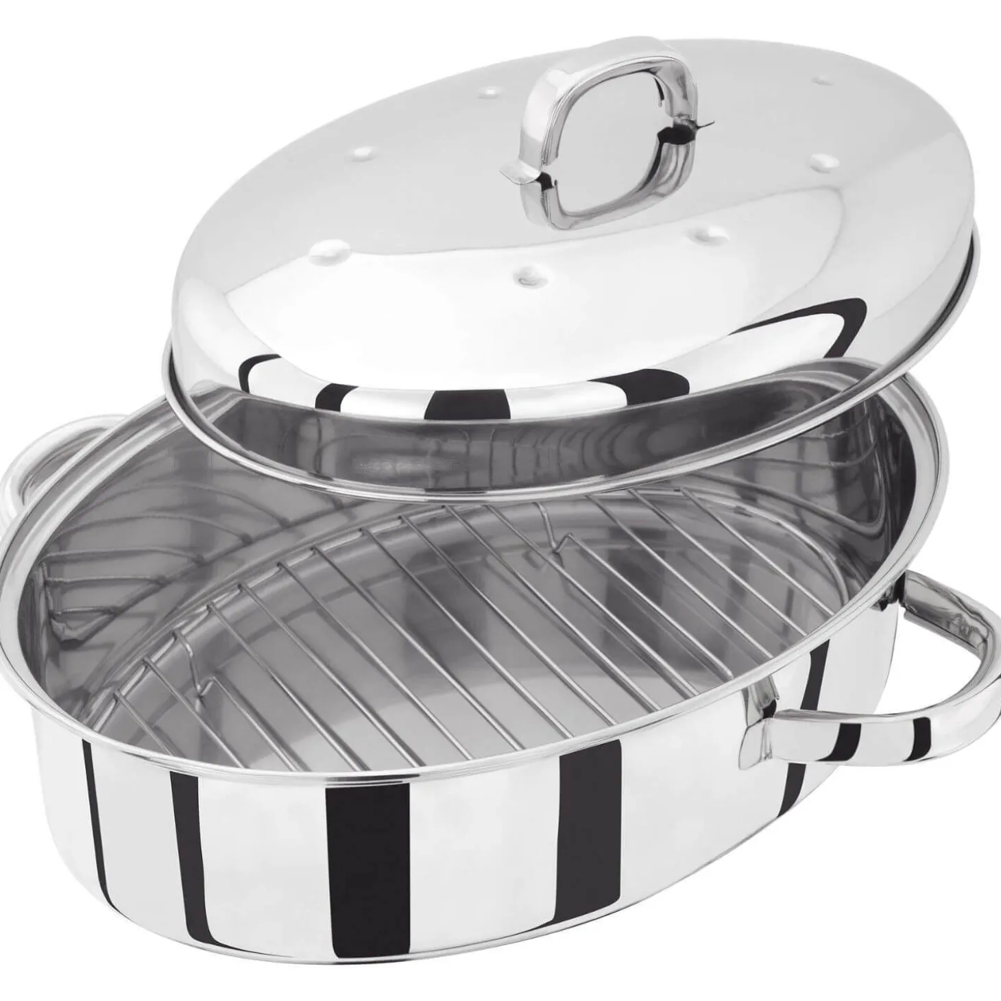 - Meat is elevated enabling you to catch juices for gravy at the bottom of the roaster
