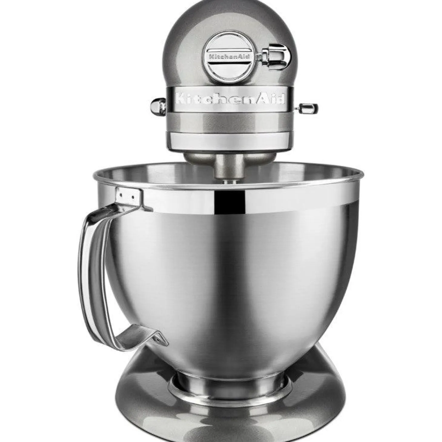 KitchenAid presents the 185 Artisan Tilt-Head Stand Mixer in Medallion Silver, ideal for all your baking needs. This mixer enables you to create a wide variety of recipes with endless possibilities. It features a multipurpose attachment hub, a direct drive motor, and a sturdy metal body finished in a stylish medallion silver. This stand mixer is a perfect addition to any baker’s kitchen!