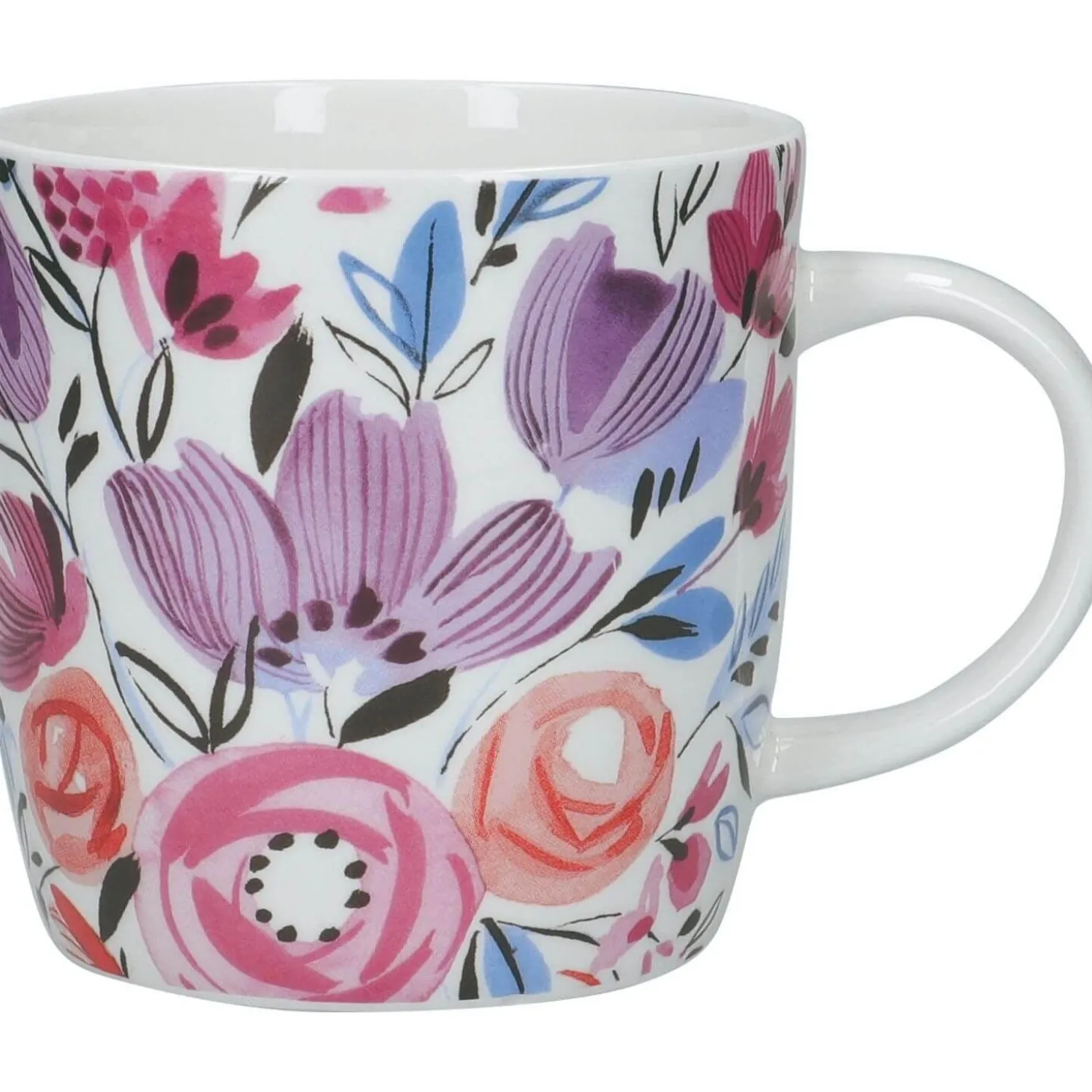 Enjoy your favourite hot drinks with the Kitchencraft Modern Rose 425ml Barrel Mug forming part of the Barrell Mug collection by Kitchencraft. Each mug features a traditional barrel shape body and ample handles making them ideal for clutching with both hands. Each mug in the Barrel range features bold contrasting colour prints which are instantly eye-catching.