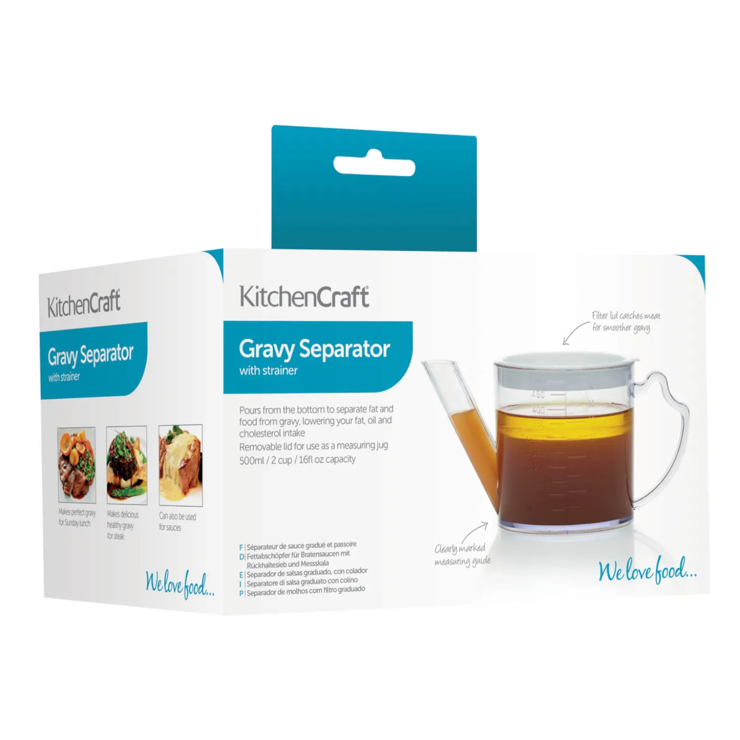 KitchenCraft presents the 500ml Gravy Separator & Measuring jug, ideal for separating the juices and the fat from your meat to aid you in creating a delicious gravy but with less oil and therefore healthier. This great jug can also be used as a measuring jug with clear markings on the outside for easy reading.