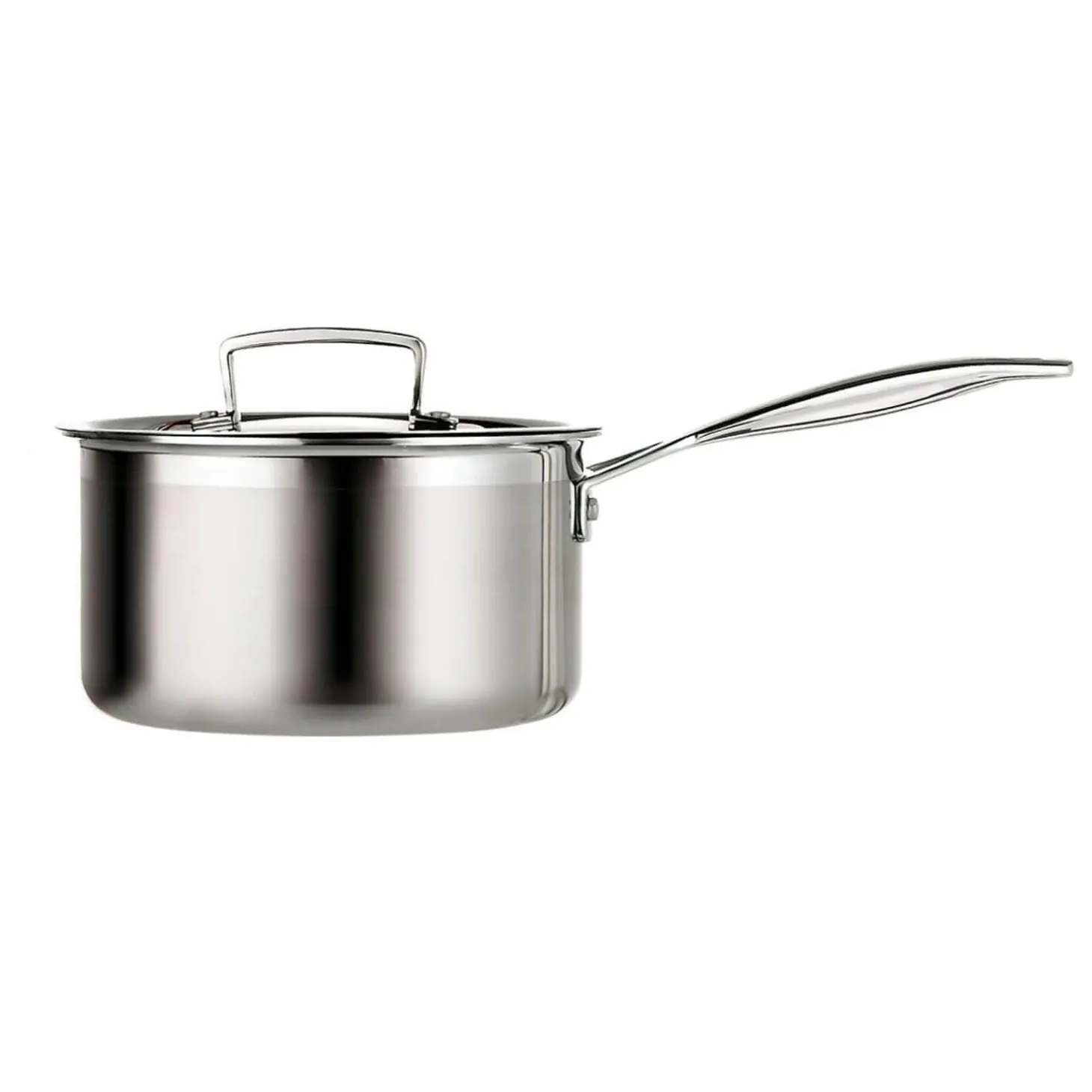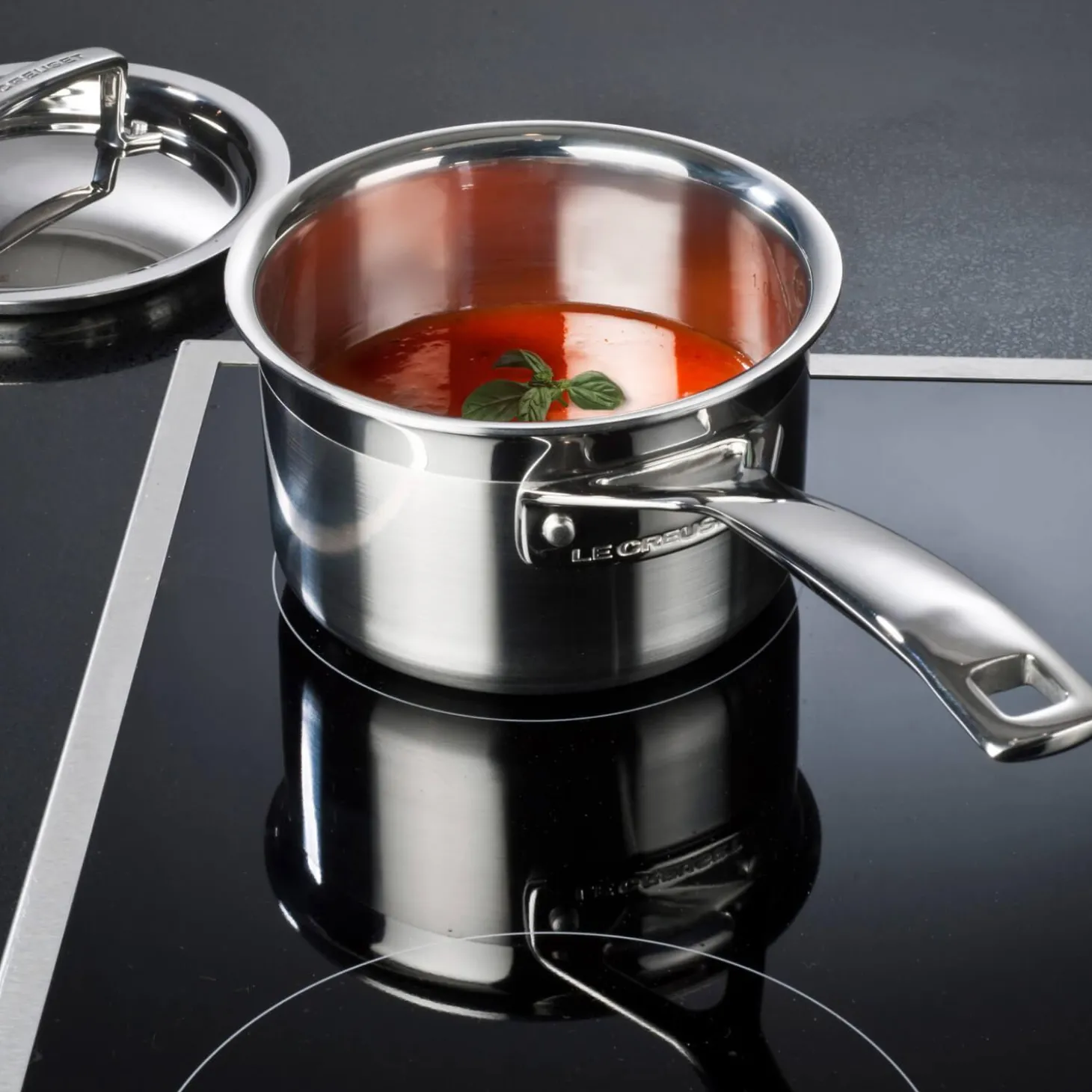 Le Creuset presents the 14cm 3-Ply Stainless Steel Saucepan with Lid, which forms part of their range of stylish stainless steel cookware. Designed with a magnetic steel base, an aluminum core, and a mirror-polished stainless steel exterior, this cookware ensures exceptional heat distribution, working perfectly on all hobs, including induction. The ideal blend of style and performance for your kitchen!
