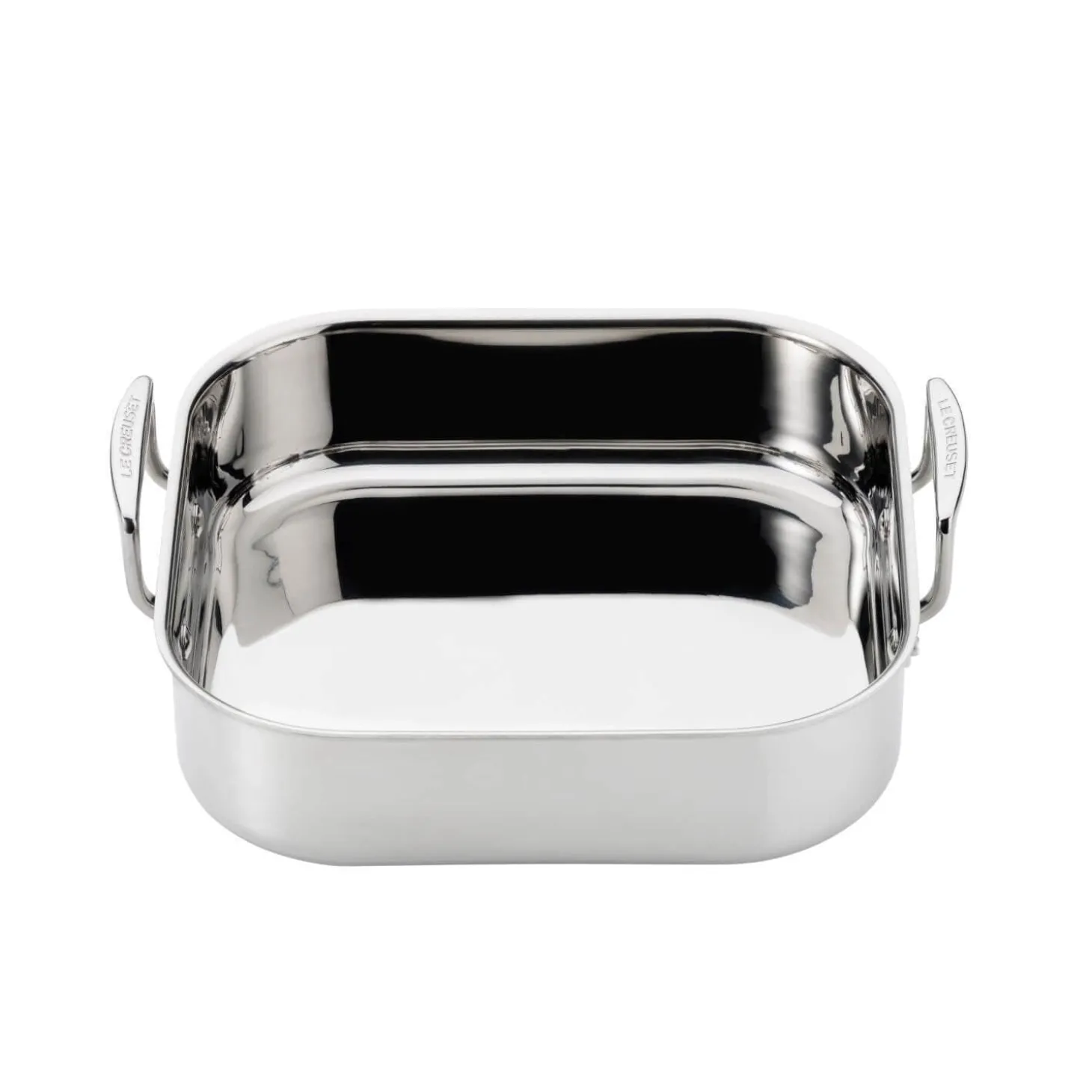 The 26cm Le Creuset 3 Ply Stainless Steel Square Roaster will roast a joint of meat or create a tasty pasta bake with ease. This 3-ply Stainless Steel square roaster is versatile, practical and ideal for everyday cooking whether creating sweet or savoury dishes.
