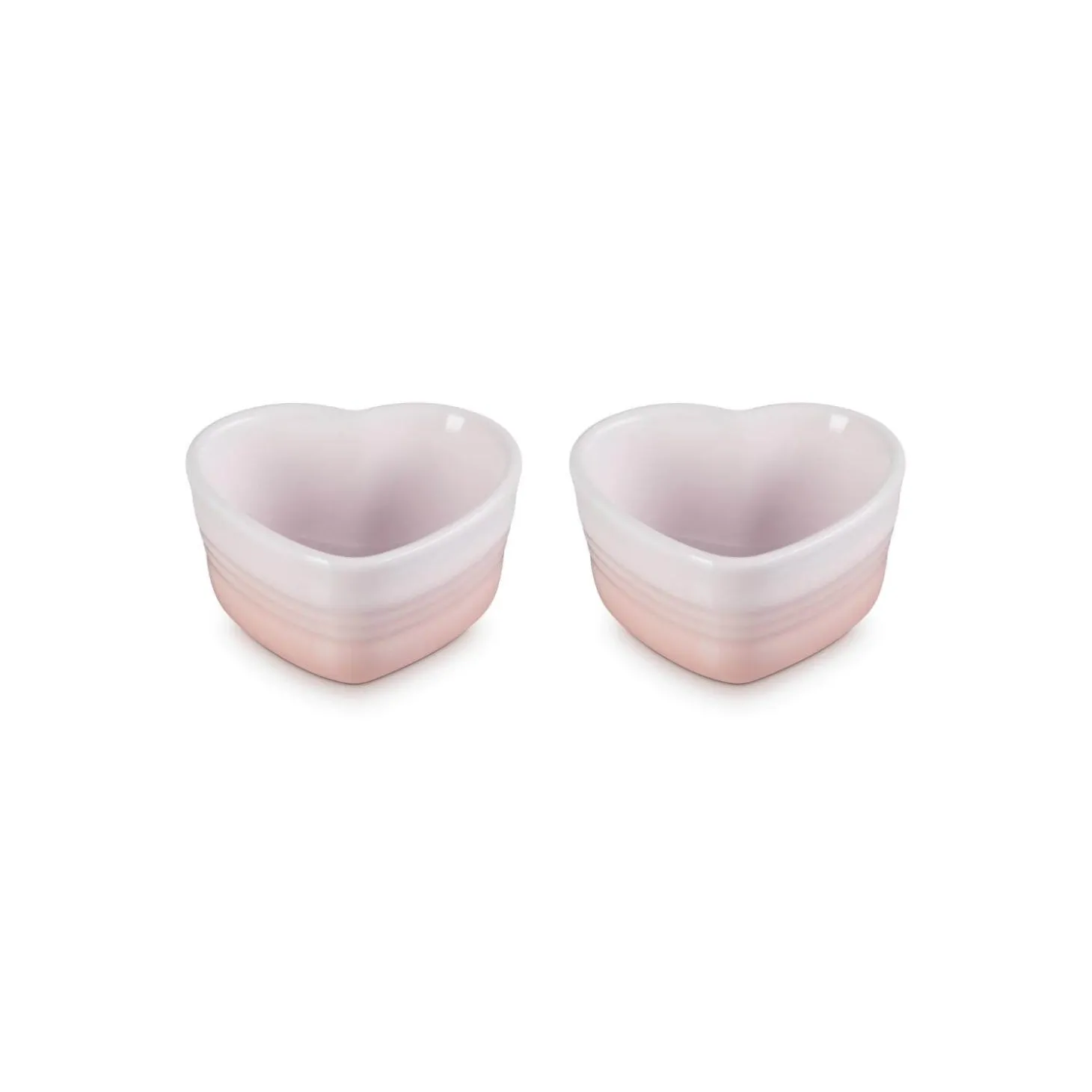 Le Creuset presents the Stoneware Set of 2 Heart Ramekins in Shell Pink as part of their heart collection, perfect for desserts, nibbles, dips and cooked dishes such as souffles. Created from specialist clays and fired at high temperatures to ensure unmatched quality and durability. Each item in the stoneware collection has an easy to clean scratch-resistant enamel coating.