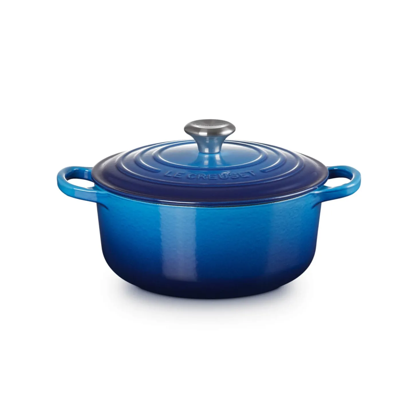 The Signature cast iron 20cm casserole dish in Azure by Le Creuset is a timeless kitchen essential. The dish can be applied to a whole variety of recipes ranging from stews, roasts, bread and much more. This casserole dish has been handcrafted in France using cast iron and can be used on all hob types including induction. The Signature range also features enamel easy clean interiors, ergonomic stainless steel knobs and a variety of vibrant colours.