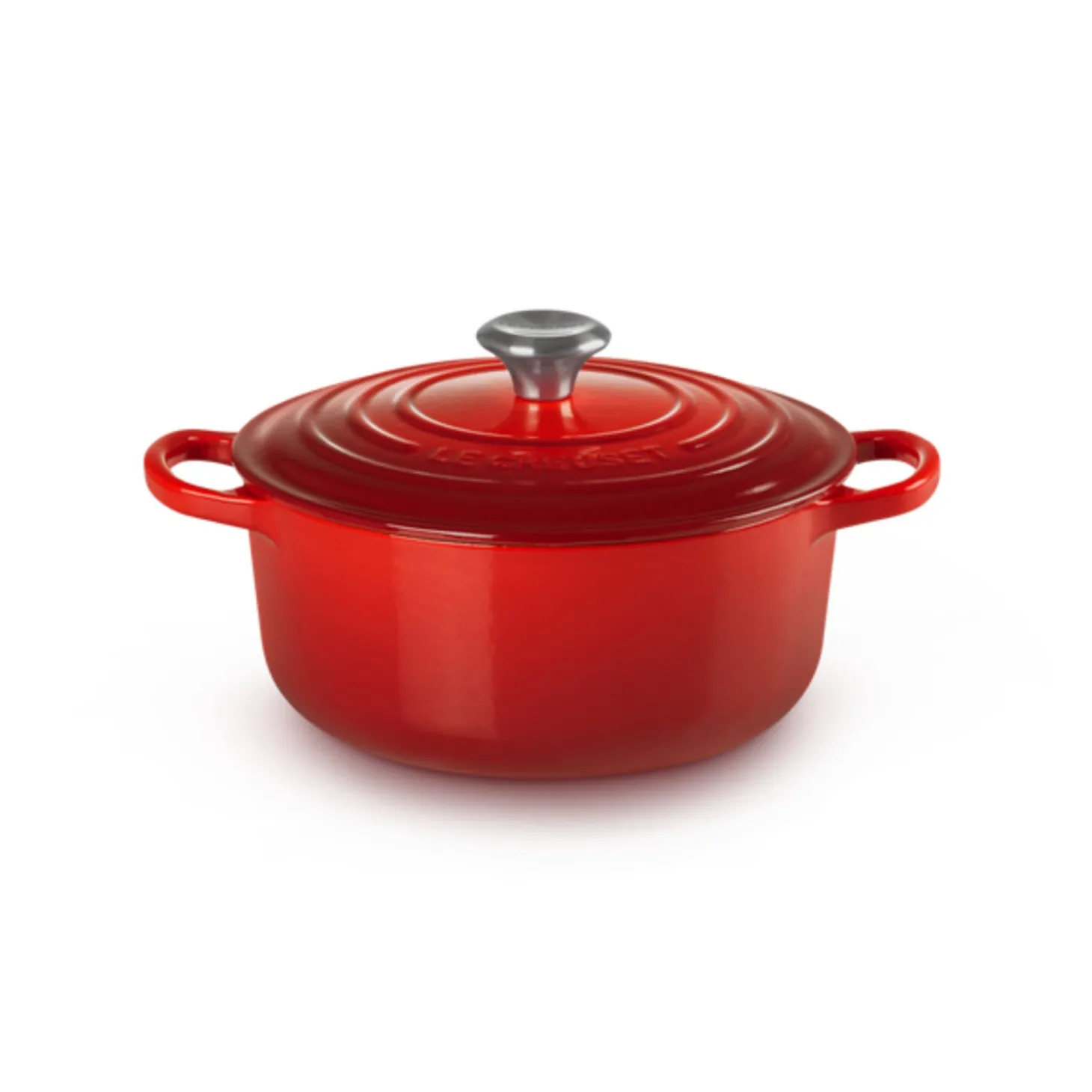 The Signature cast iron 20cm casserole dish in Cerise by Le Creuset is a timeless kitchen essential. The dish can be applied to a whole variety of recipes ranging from stews, roasts, bread and much more. This casserole dish has been handcrafted in France using cast iron and can be used on all hob types including induction. The Signature range also features enamel easy clean interiors, ergonomic stainless steel knobs and a variety of vibrant colours.