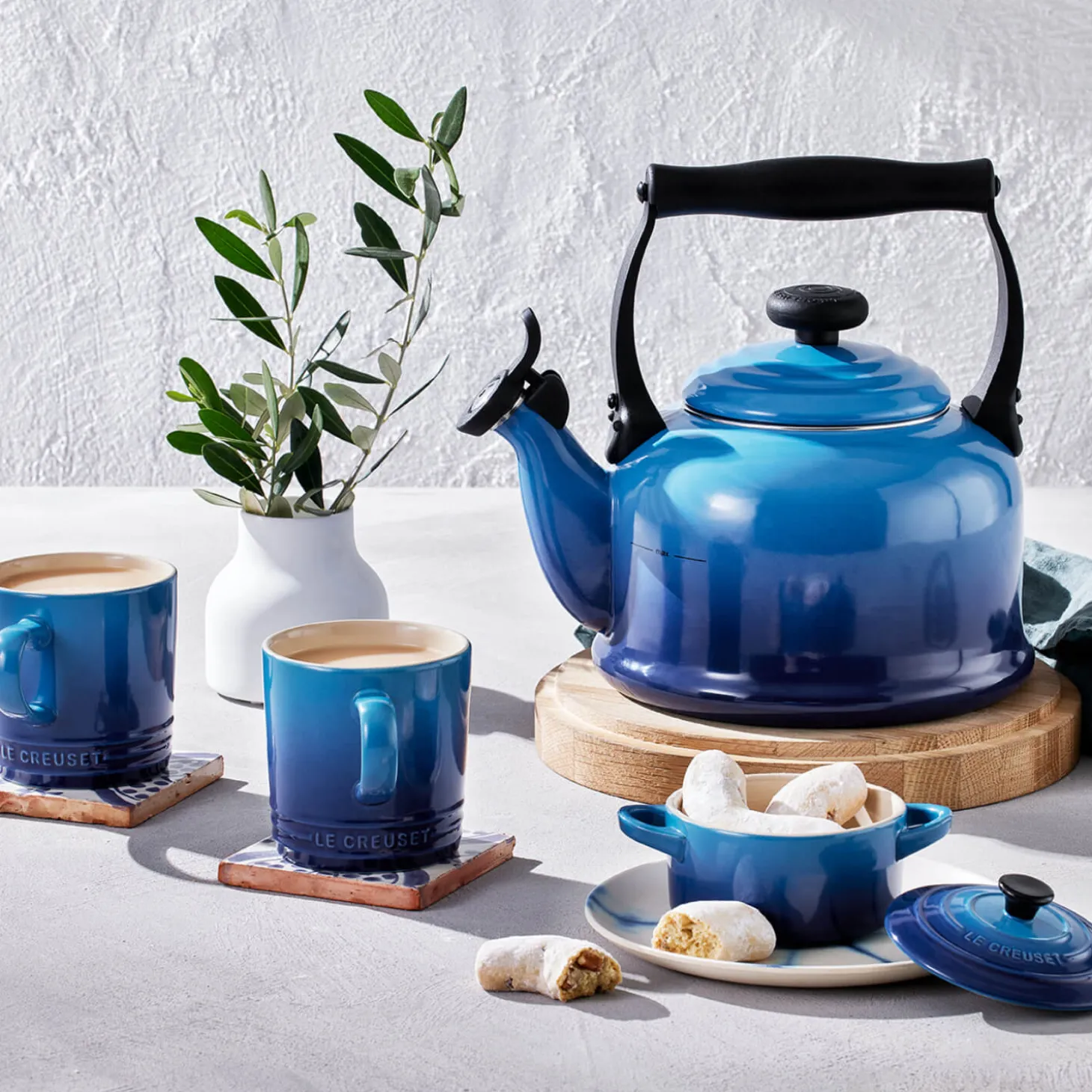 The Le Creuset Stoneware Grand Mug in Azure is perfect for serving tea, coffee and other hot drinks. Created from specialist clays and fired at high temperatures to ensure unmatched quality and durability. Each item in the stoneware collection has an easy to clean scratch-resistant enamel coating. With a capacity of 400ml, this large mug is ideal for frothy coffees, soups and desserts in the comfort of your own home.