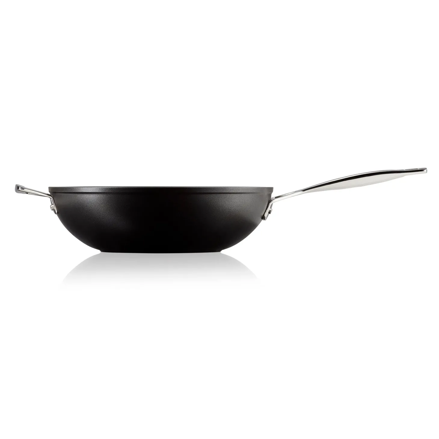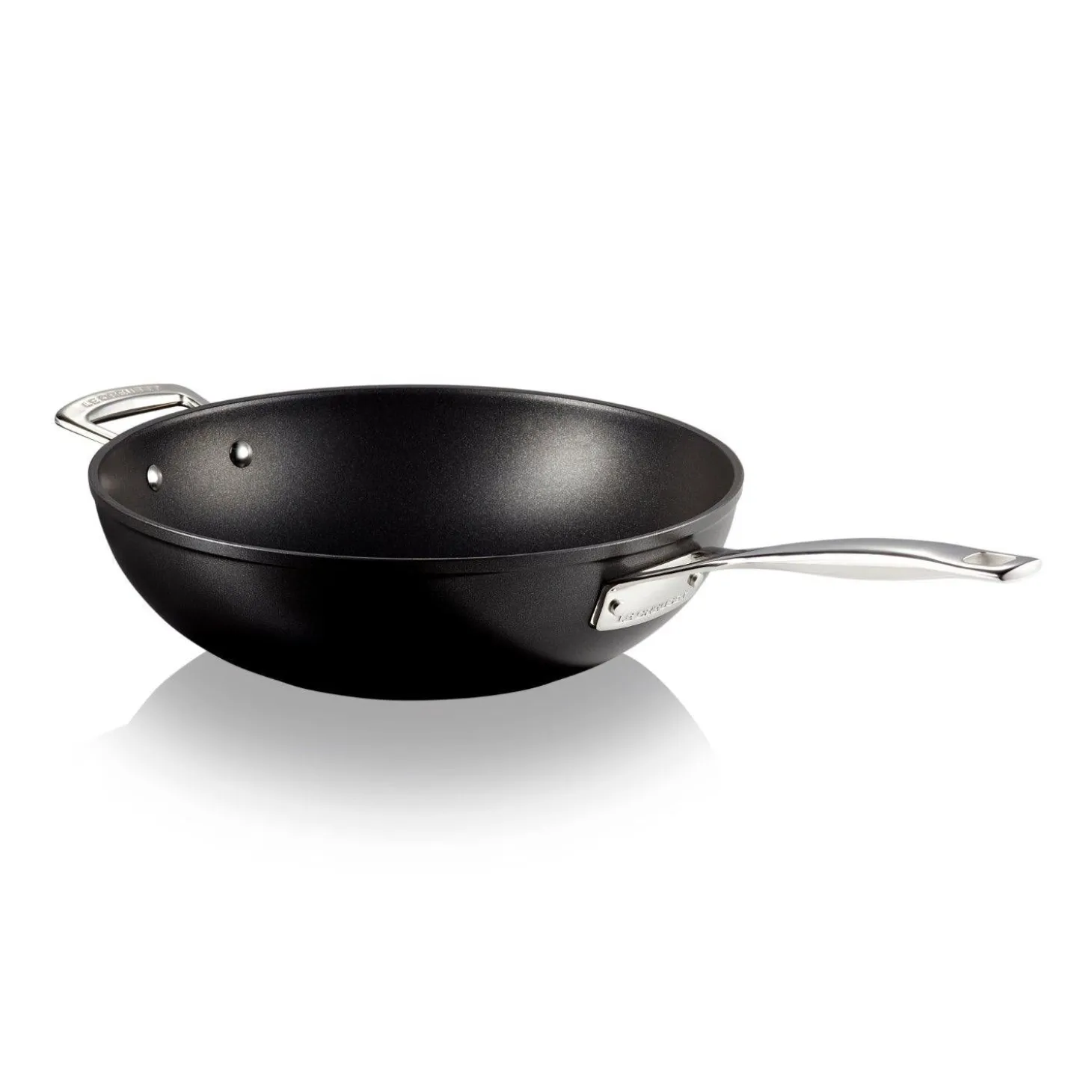 Designed for oriental stir-frying this 30cm pan by Le Creuset forms parts of their improved Toughened Non-Stick range which now feature 4x* as much strength as the previous edition thanks to a 3-layer PFOA free coating. This pan also provides excellent heat distribution across all hobs including induction and features ergonomic stainless steel handles attached by complementing rivets further enhancing the items longevity.