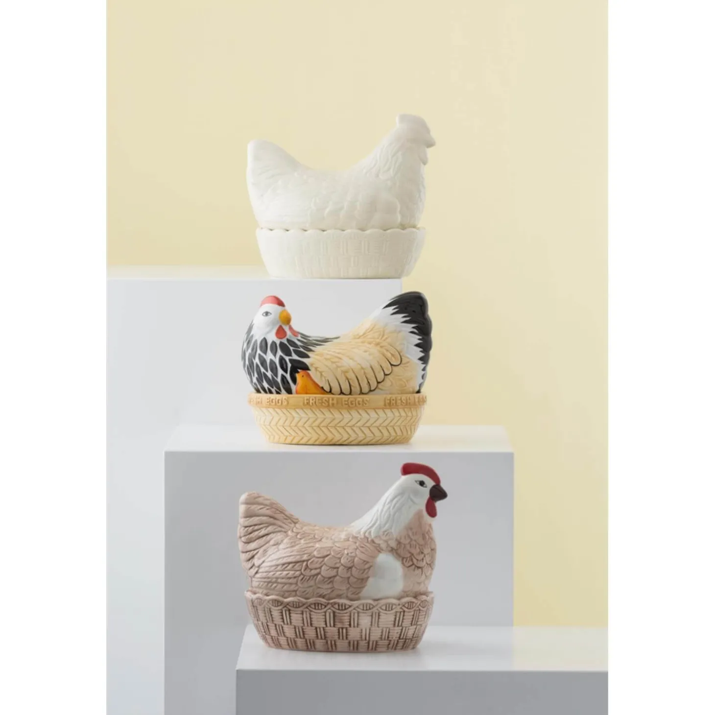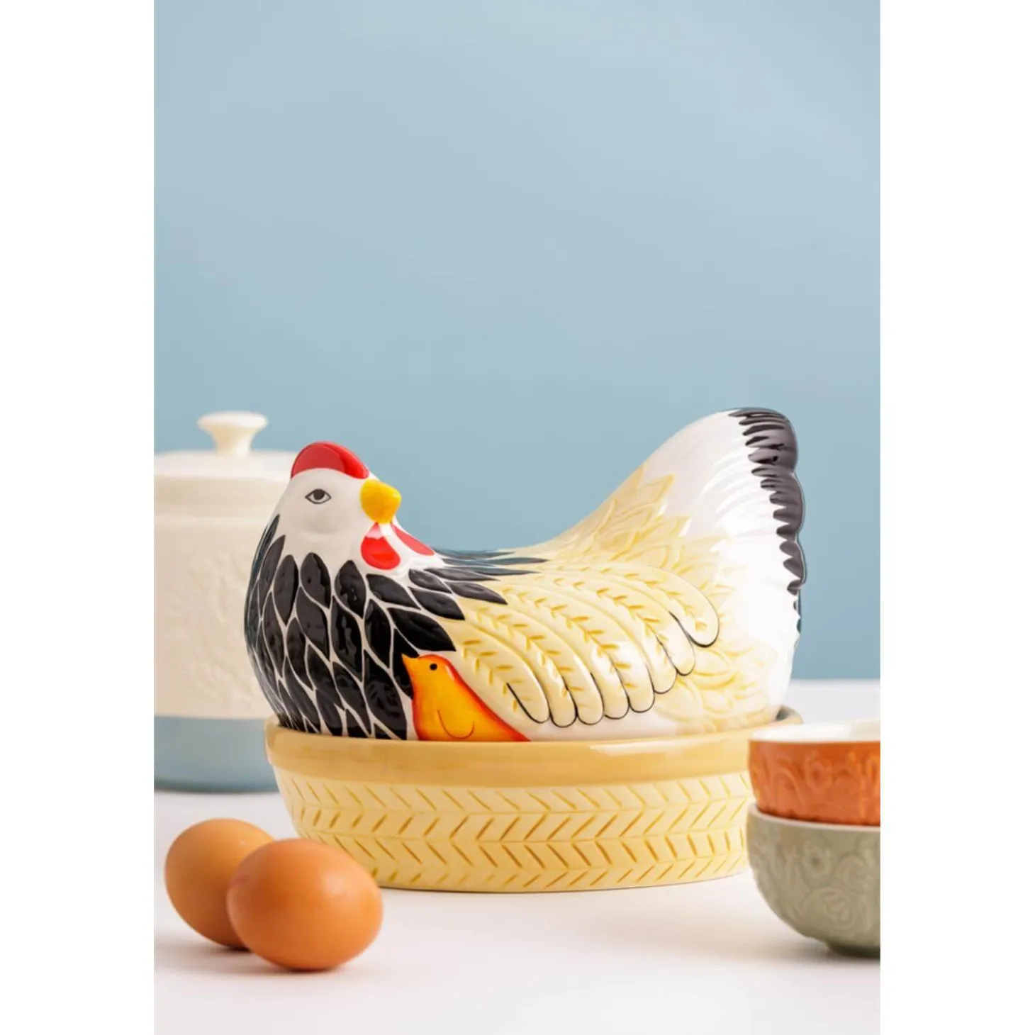 This beautifully coloured Mother Hen Egg Nest by Mason Cash is inspired by traditional British farmyards. It features a modern design with a rustic touch. Made from high-quality, chip-resistant dolomite, the Hen Egg Nest is not only perfect for storing eggs but can also serve as a stylish kitchen tidy.