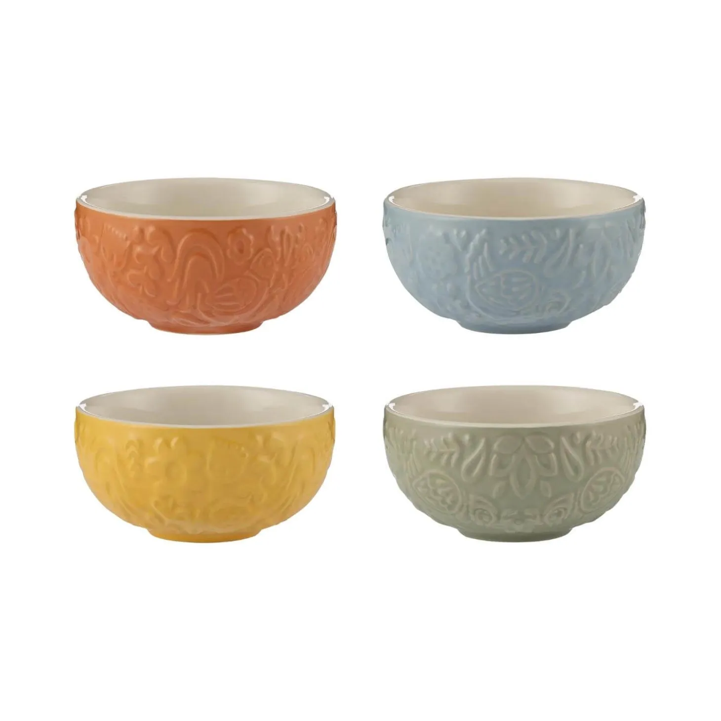 Mason Cash presents the 4-Piece Mini Bowl Set as part of their ‘Home to Roost’ collection. Made from durable earthenware, these bowls are ideal for prepping meals or serving snacks and more. Featuring intricately embossed folk-inspired hen and cockerel motifs, this collection perfectly complements other products in the range, allowing you to mix and match to build your perfect collection.