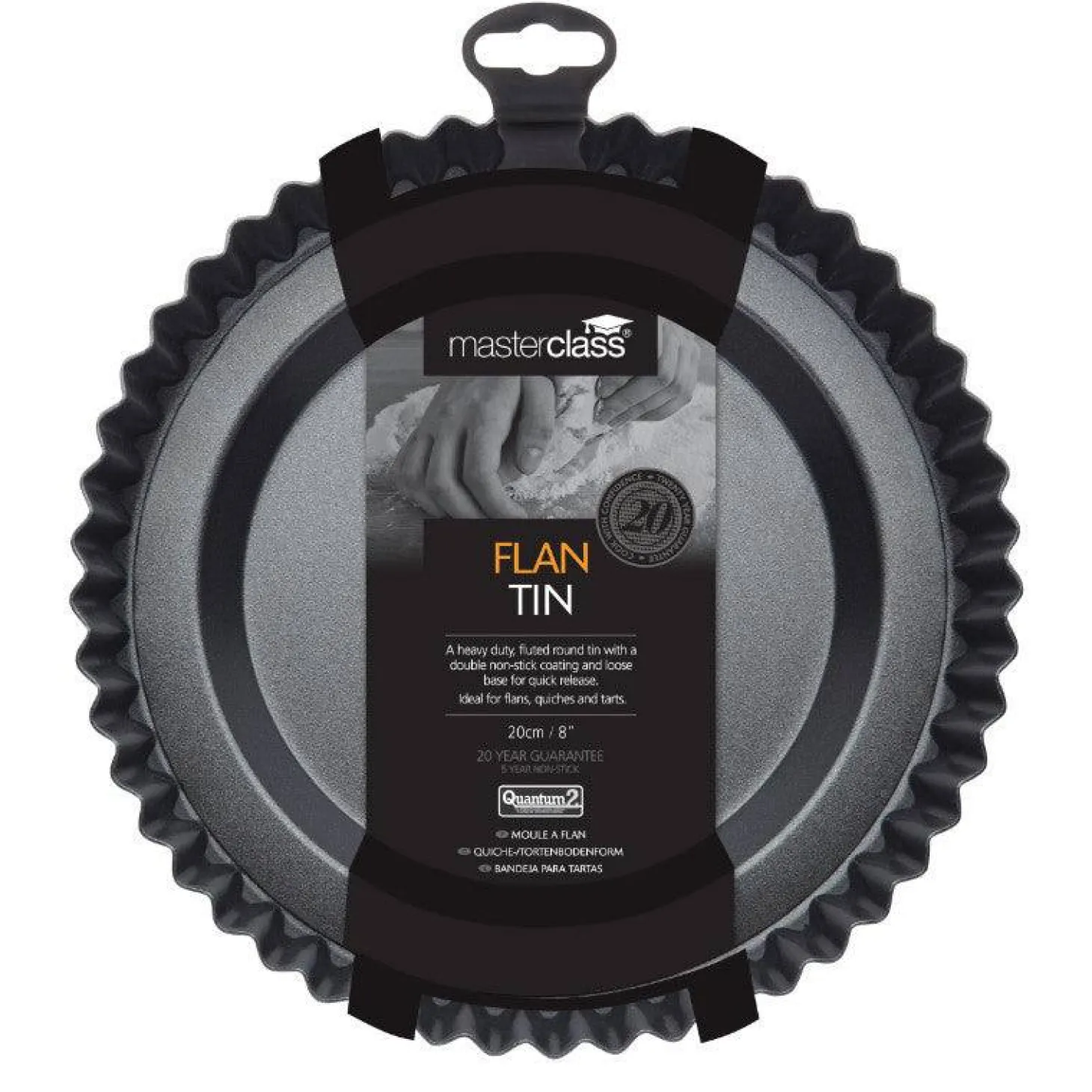 The Kitchencraft Masterclass 20cm Round Non-Stick Raised Fluted Flan Tin is made from quality heavy duty carbon steel with a non-stick coating and a raised central loose base to help you create perfect fruit flans time and time again.