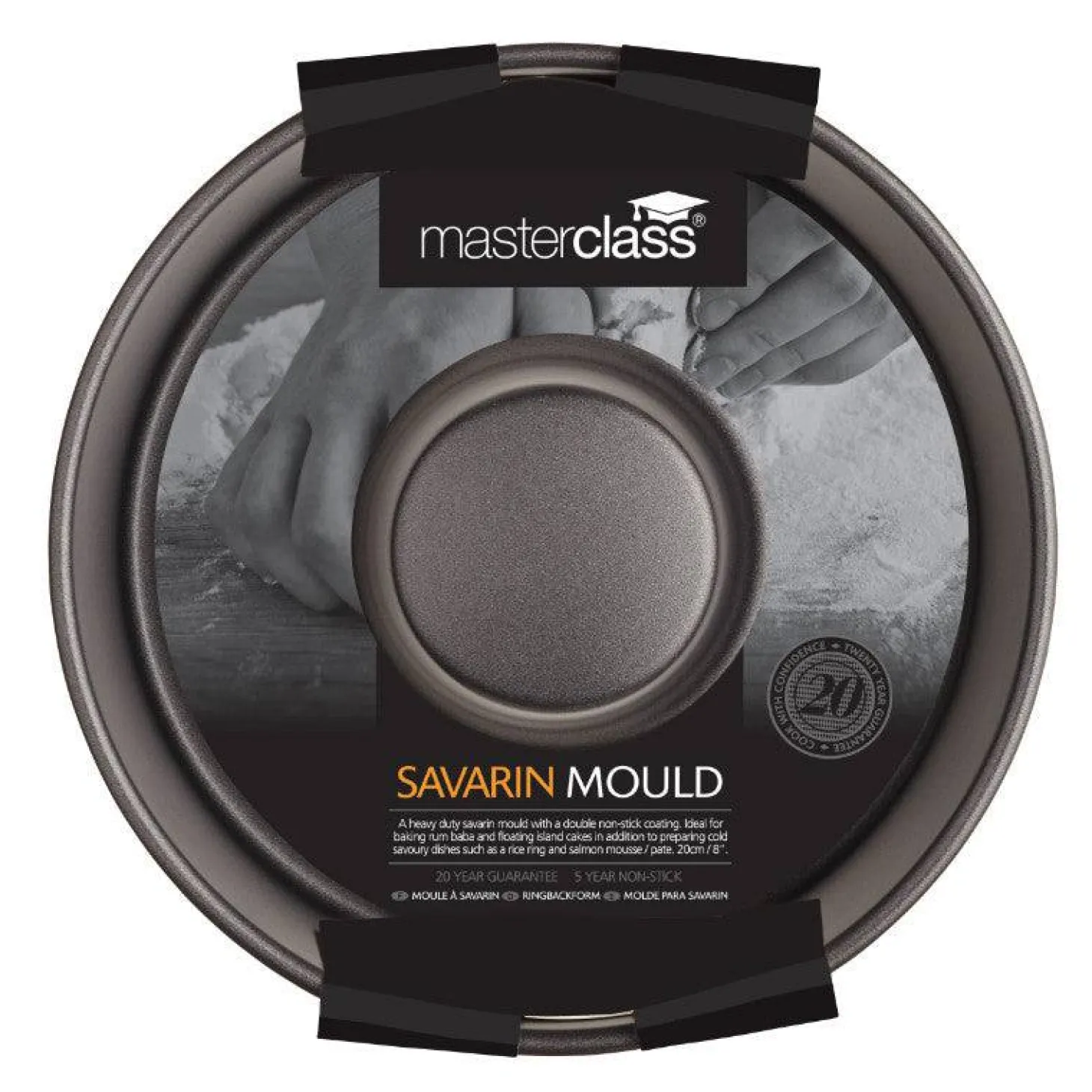 The Kitchencraft Masterclass 20cm Round Non-Stick Savarin Cake Tin will help you to create a wide variety of wonderful sweet and savoury dishes. The ring-shaped design conducts heat beautifully, making it ideal for delicious rum babas and floating island cakes. It doubles up as a fabulous mould for cold treats such as mousses and rice rings, meaning it really earns its place in your kitchen.