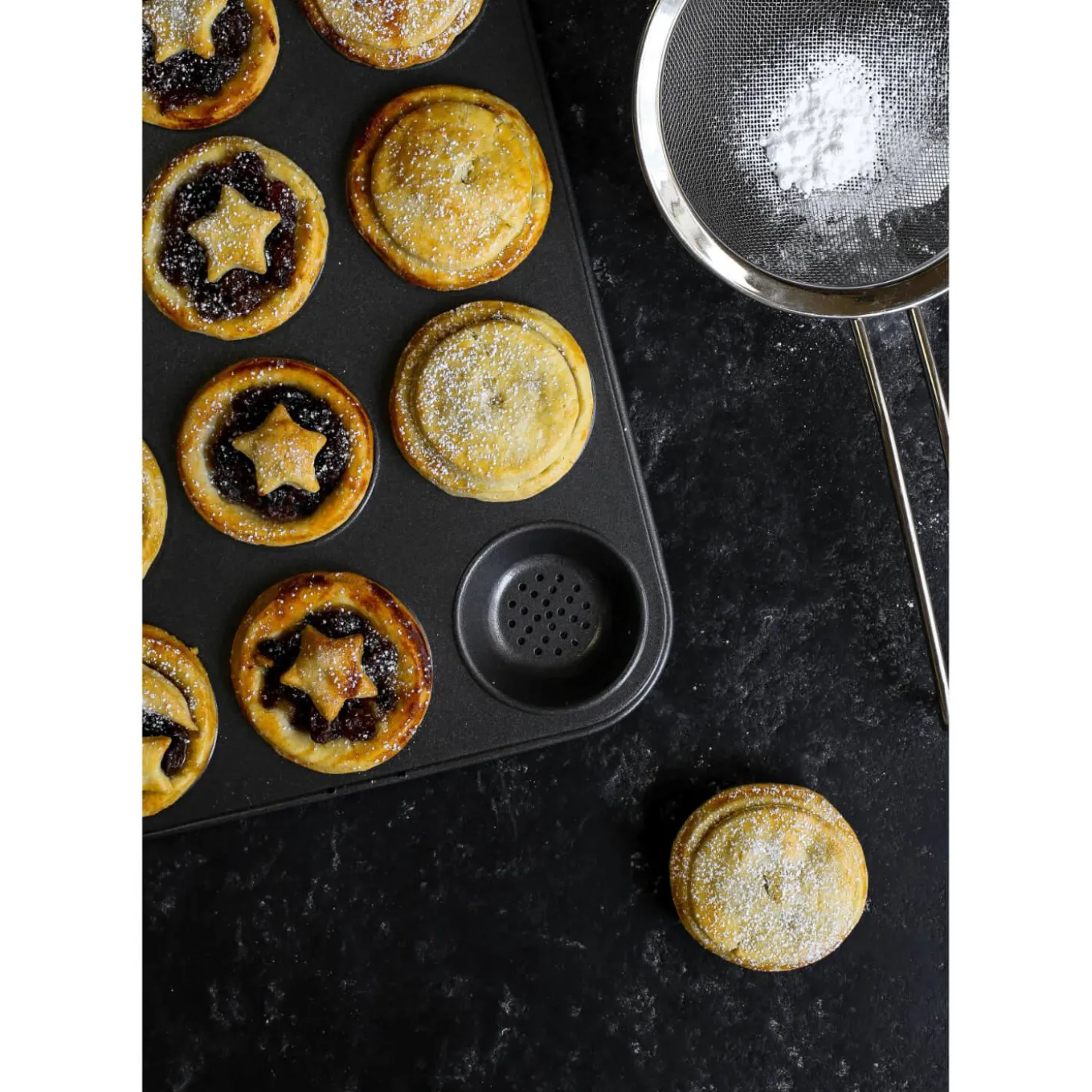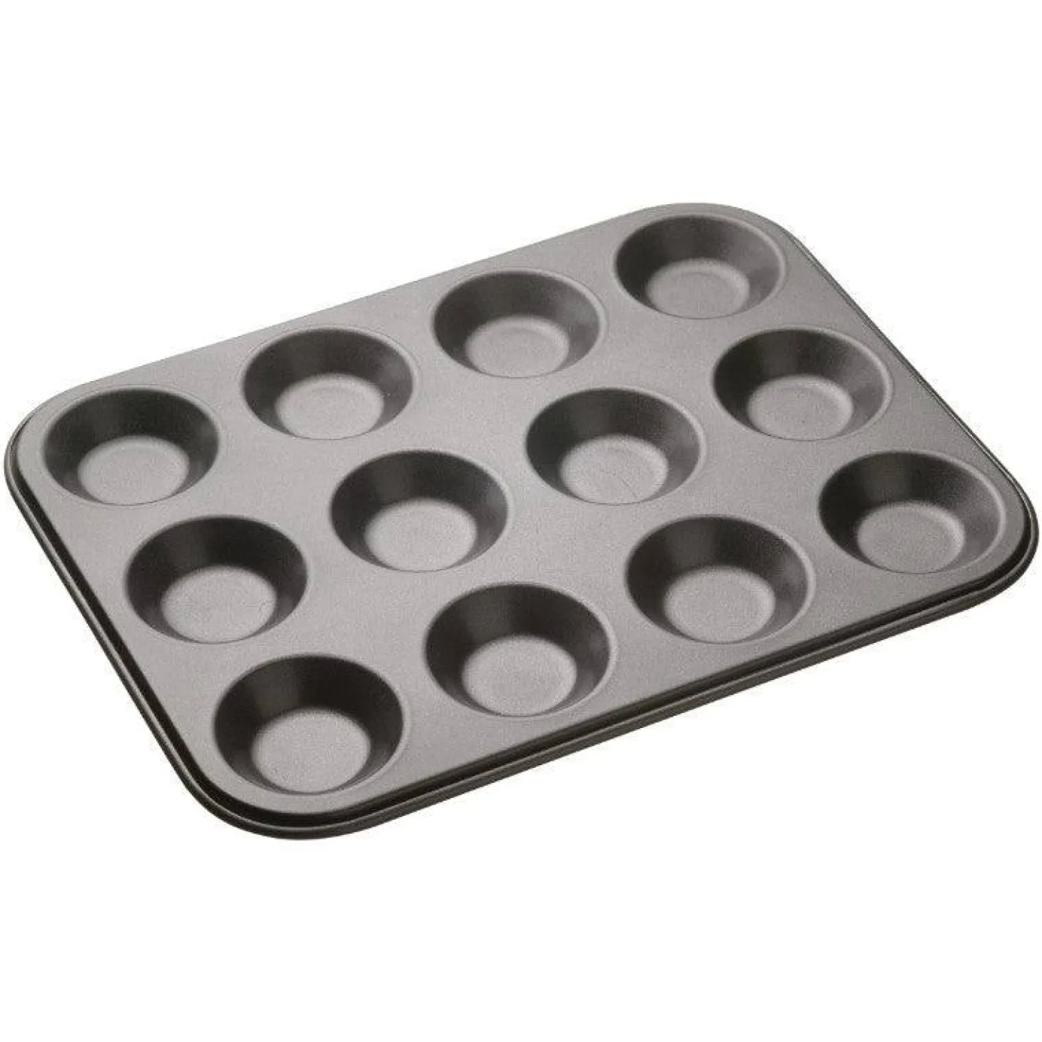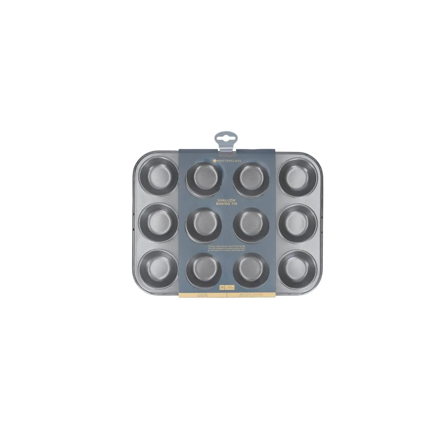 The Kitchencraft Masterclass 12 Hole Non-Stick Shallow Tin is a kitchen classic. The sturdy carbon steel with non-stick coating construction helps to ensure even heat distribution for a good bake, making it ideal for baking fairy cakes, tarts and little batter puddings.